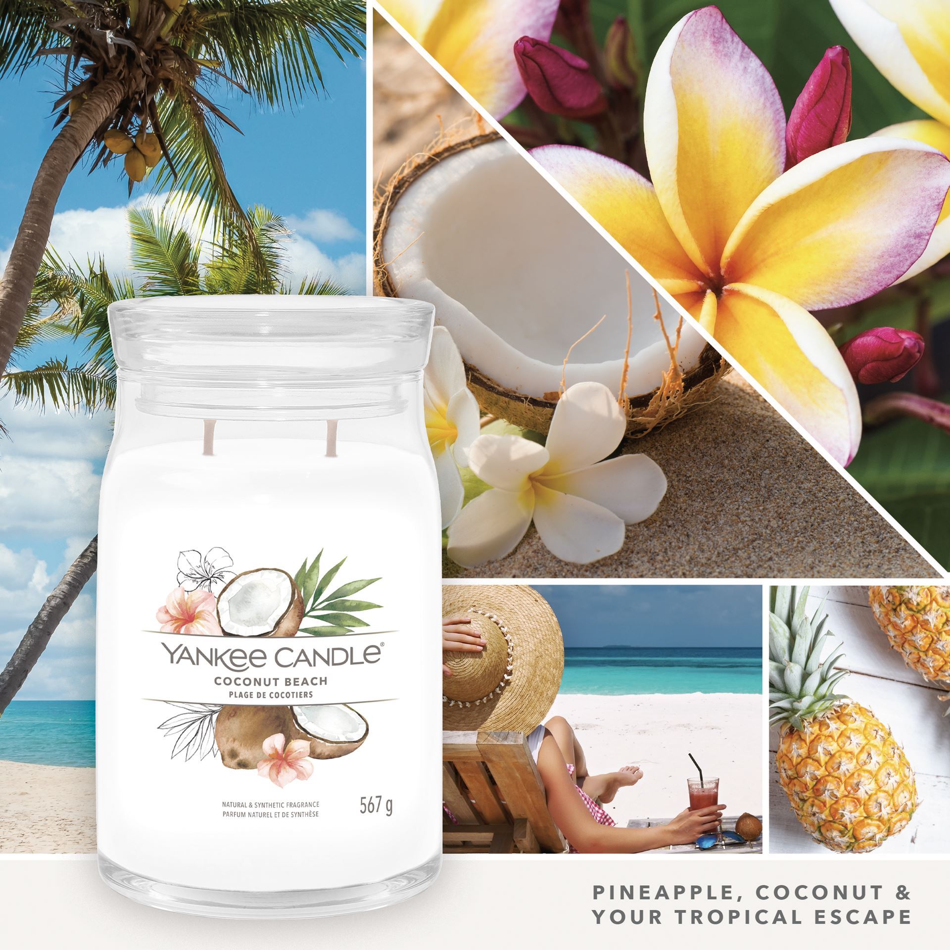 Le goût des tropiques - des notes chaudes de noix de coco mélangées à des parfums d'ananas et de vanille de Tahiti.