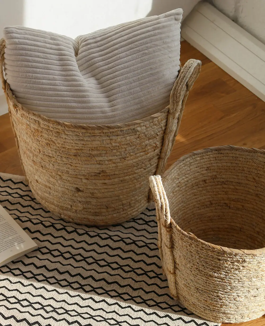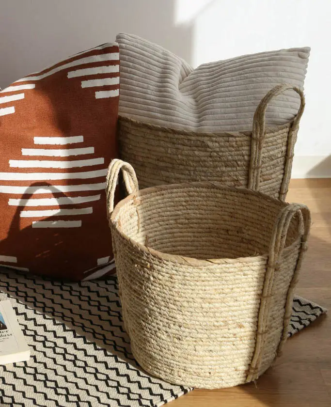 - Panier de rangement fabriqué en fibres de maïs durables avec des poignées pratiques et solides