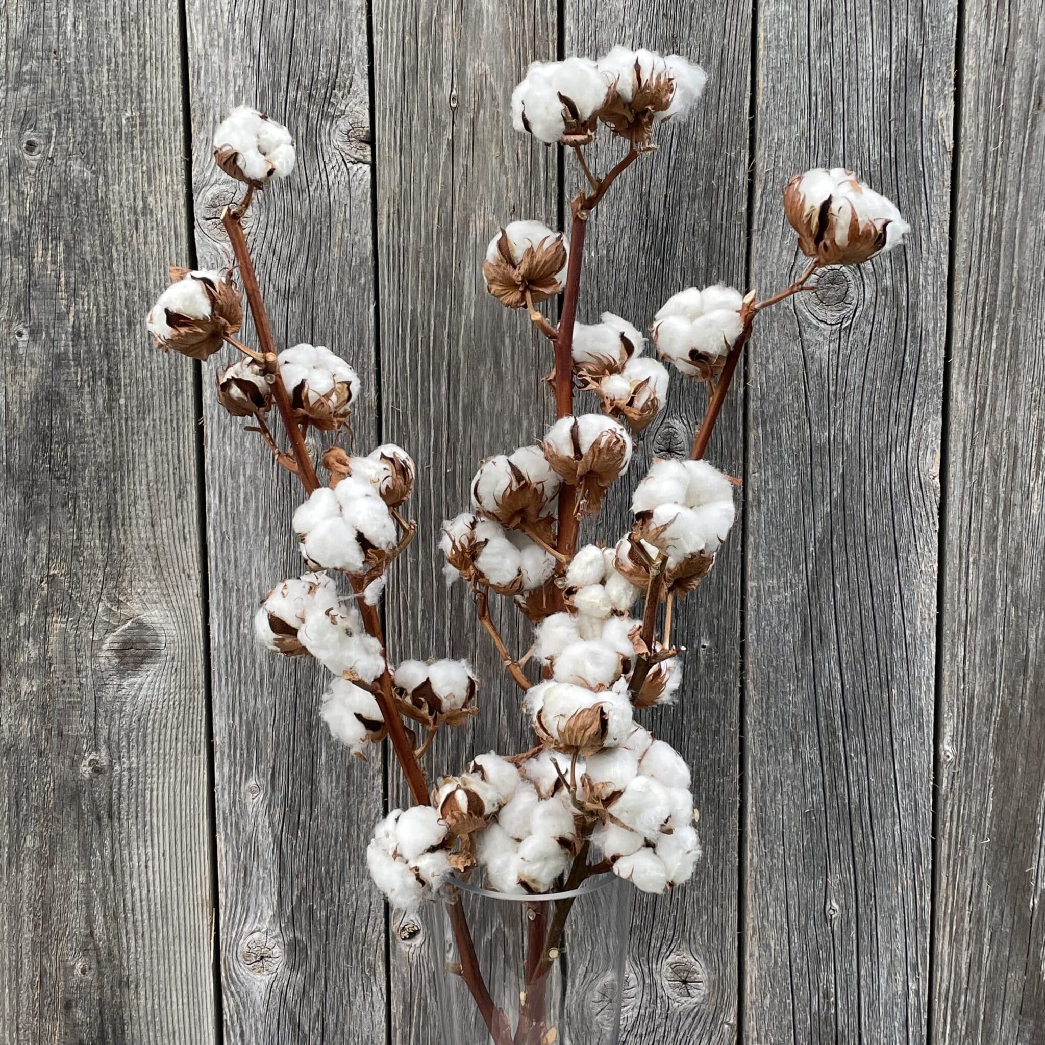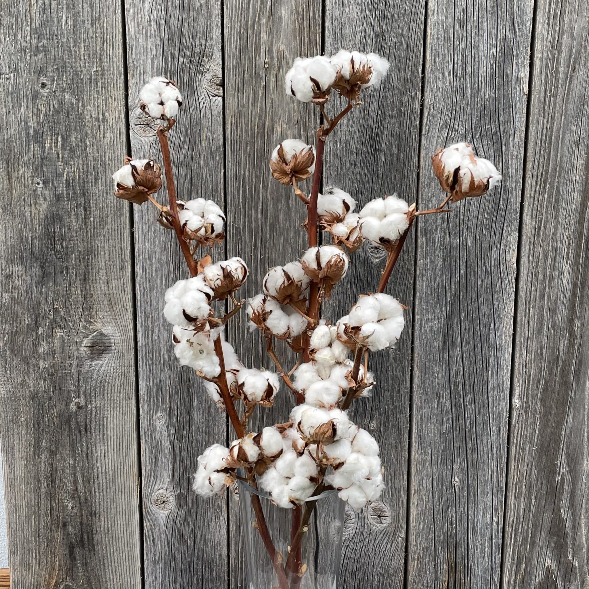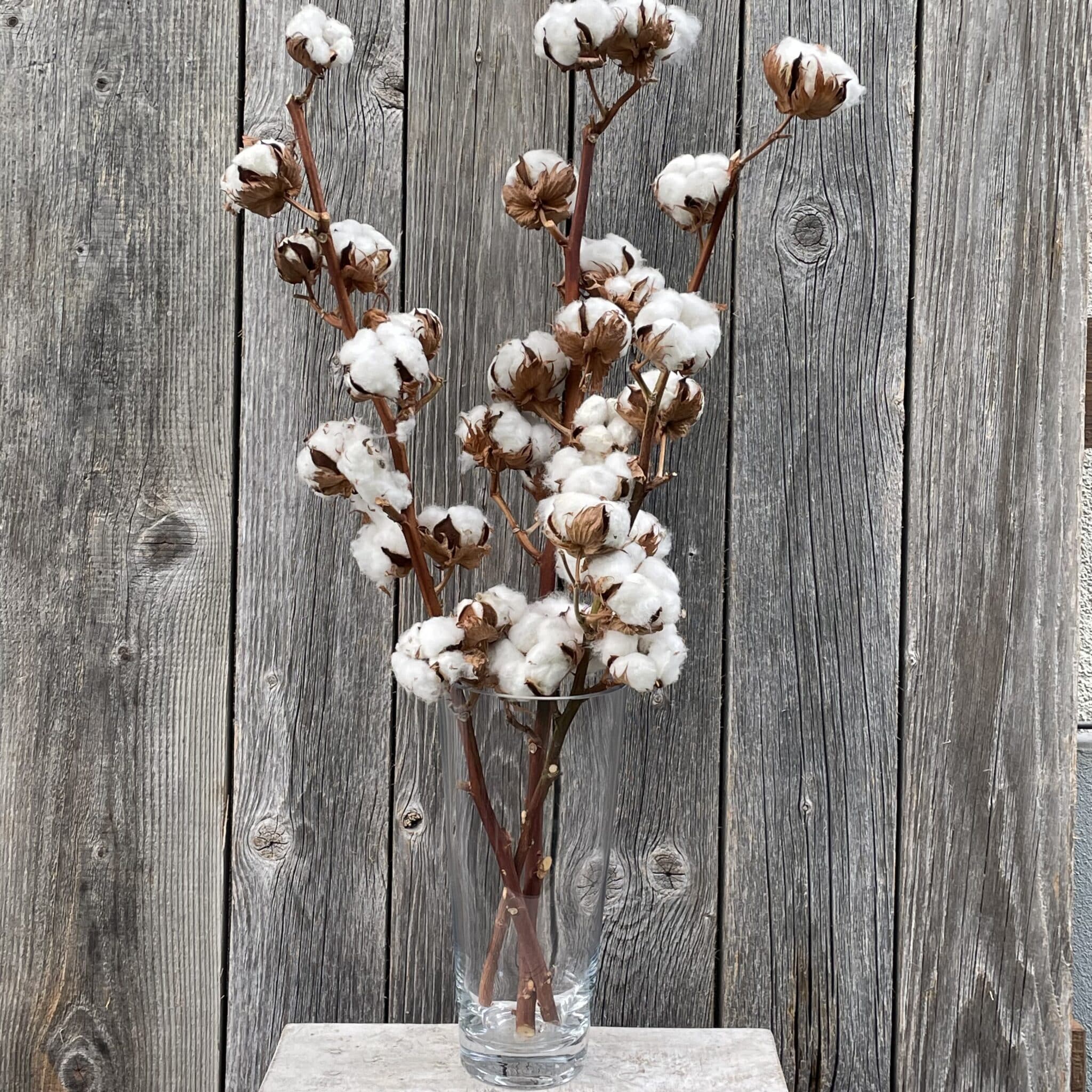 Détails des branches de coton H env. 50/70 cm / env. 8-10 touffes de coton par branche. Le prix se réfère à 3 branches de coton. Le coton est un produit naturel et peut varier en termes de disposition, de couleur et de taille des "bouquets de coton" individuels. Certaines touffes de coton peuvent aussi être entamées dans la tige par le processus de séchage ou contenir des restes secs de l'enveloppe du bourgeon.