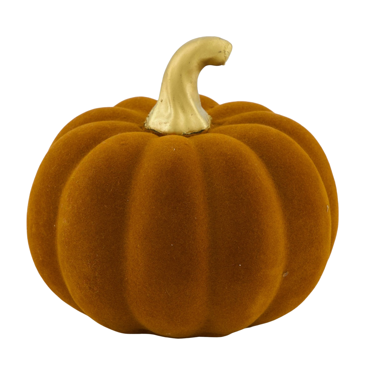 Citrouille décorative au design automnal : la surface douce et veloutée d'un orange chaud est complétée avec raffinement par une tige dorée. Parfait pour des décorations d'automne et d'Halloween élégantes. Idéal comme décoration de table ou pour des compositions saisonnières.