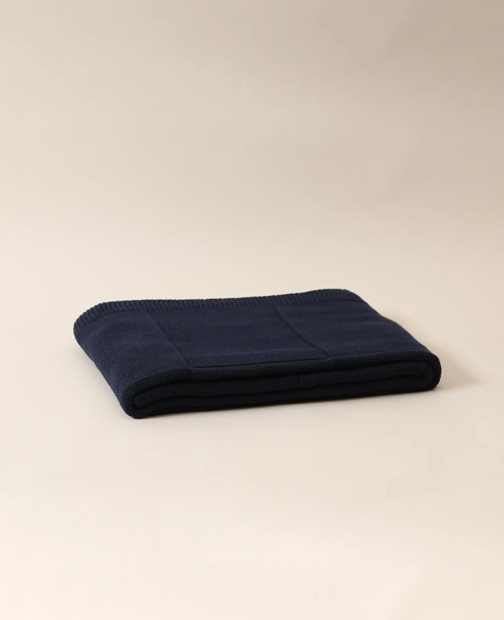 Couverture tricotée douce en coton bleu foncé, 130 x 170 cm