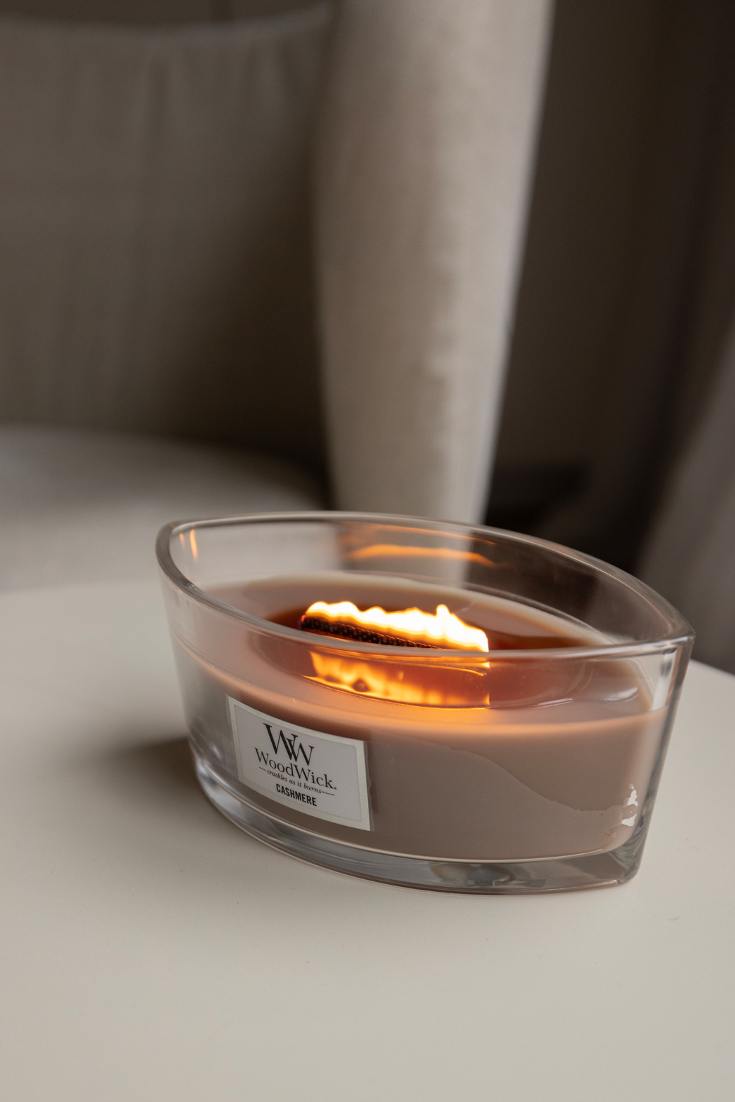 Les bougies elliptiques avec flamme Hearthwick ont une mèche en bois naturel qui produit le bruit apaisant d'un feu qui crépite. Le design exclusif crée une longue flamme dansante pour une ambiance de cheminée unique dans chaque pièce. Parfait comme cadeau ! Durée de combustion : 30-40h