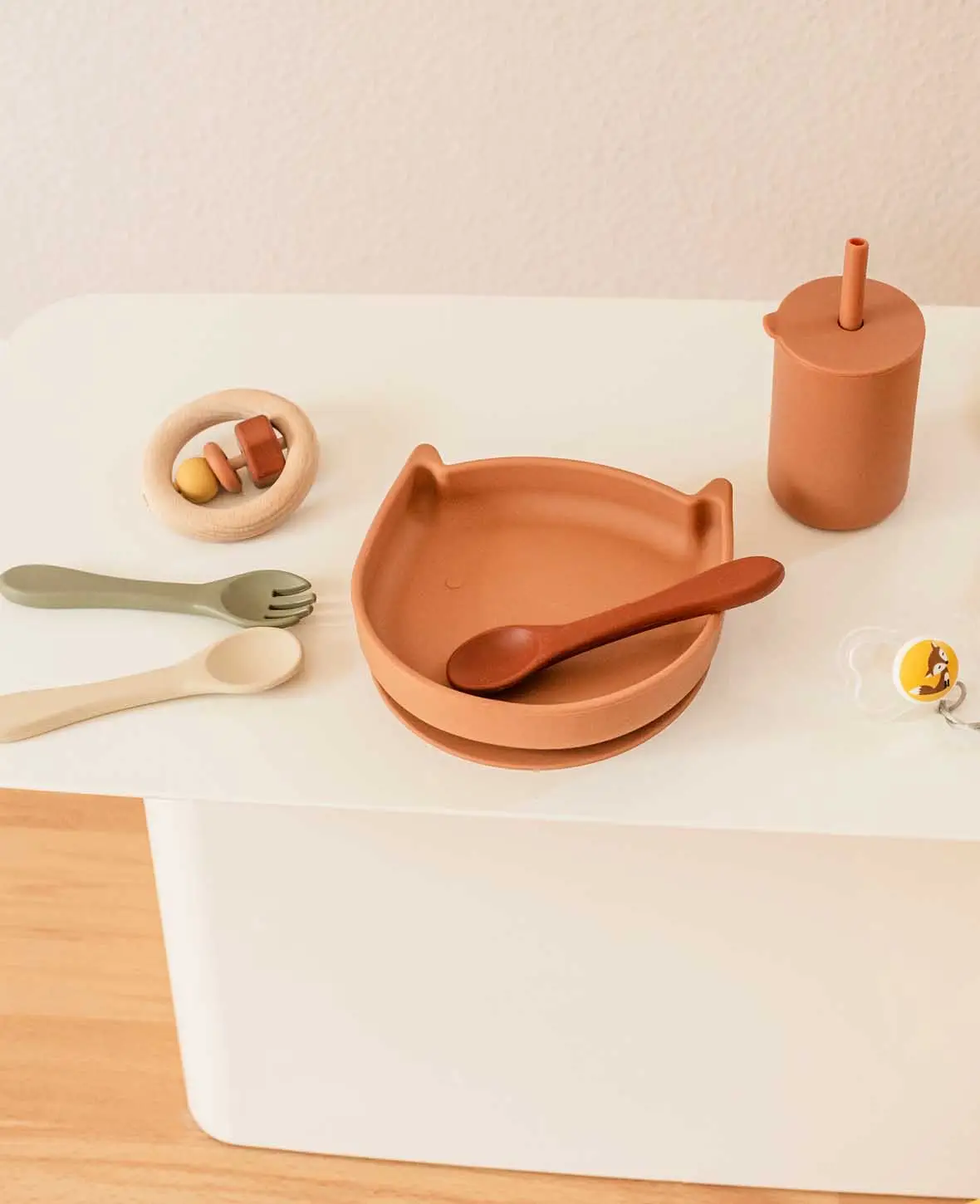 Gobelet avec paille pour enfants en silicone rouge, 200 ml