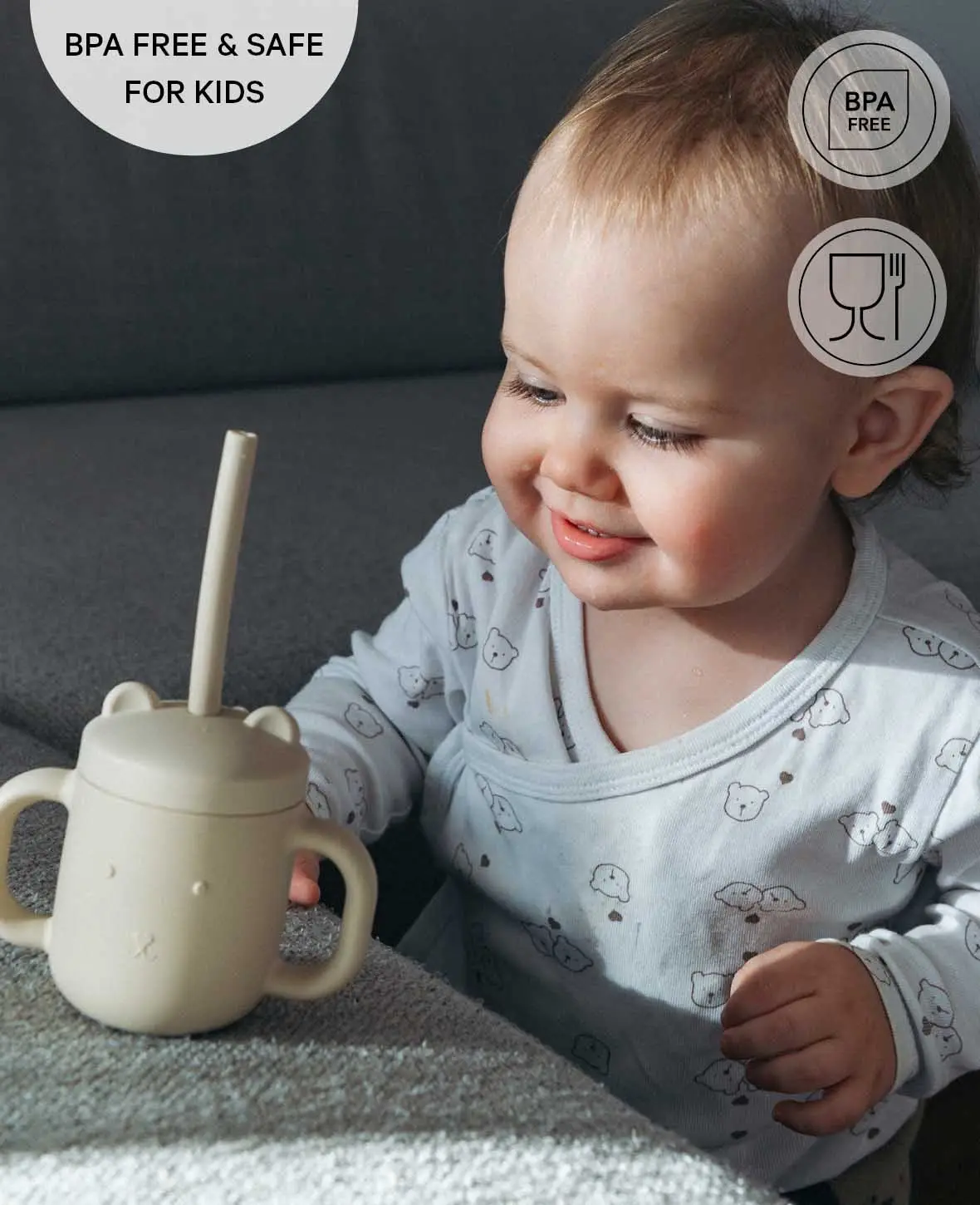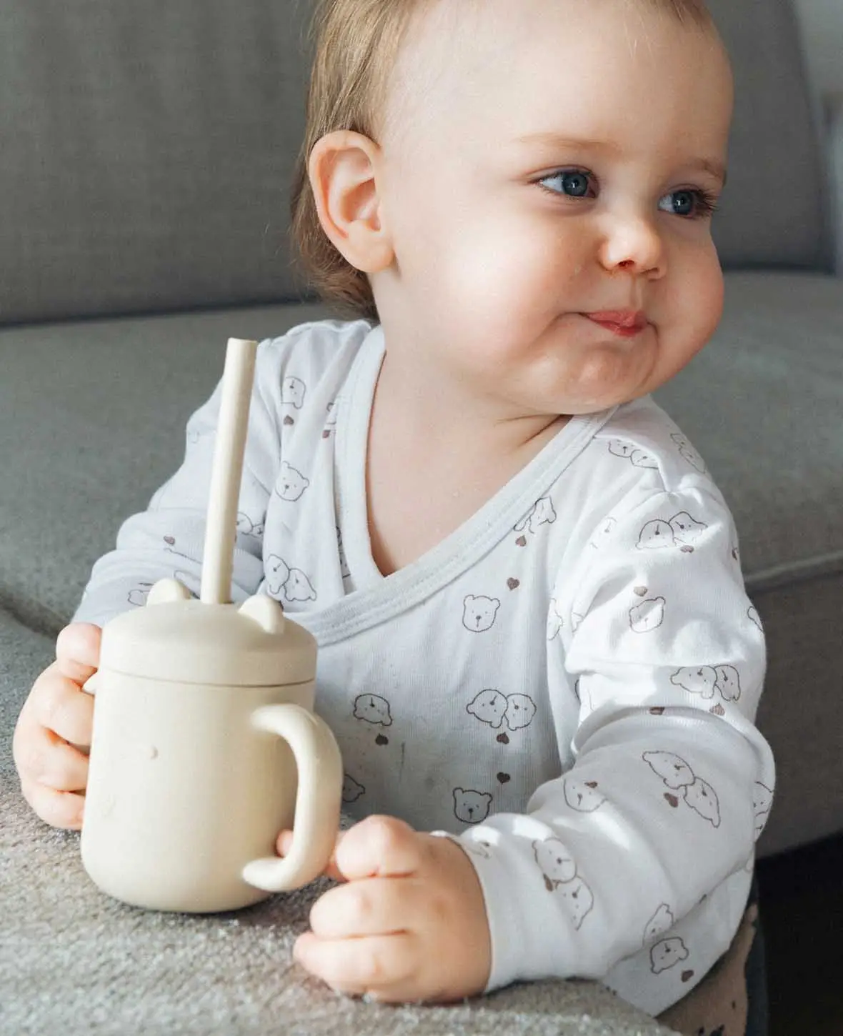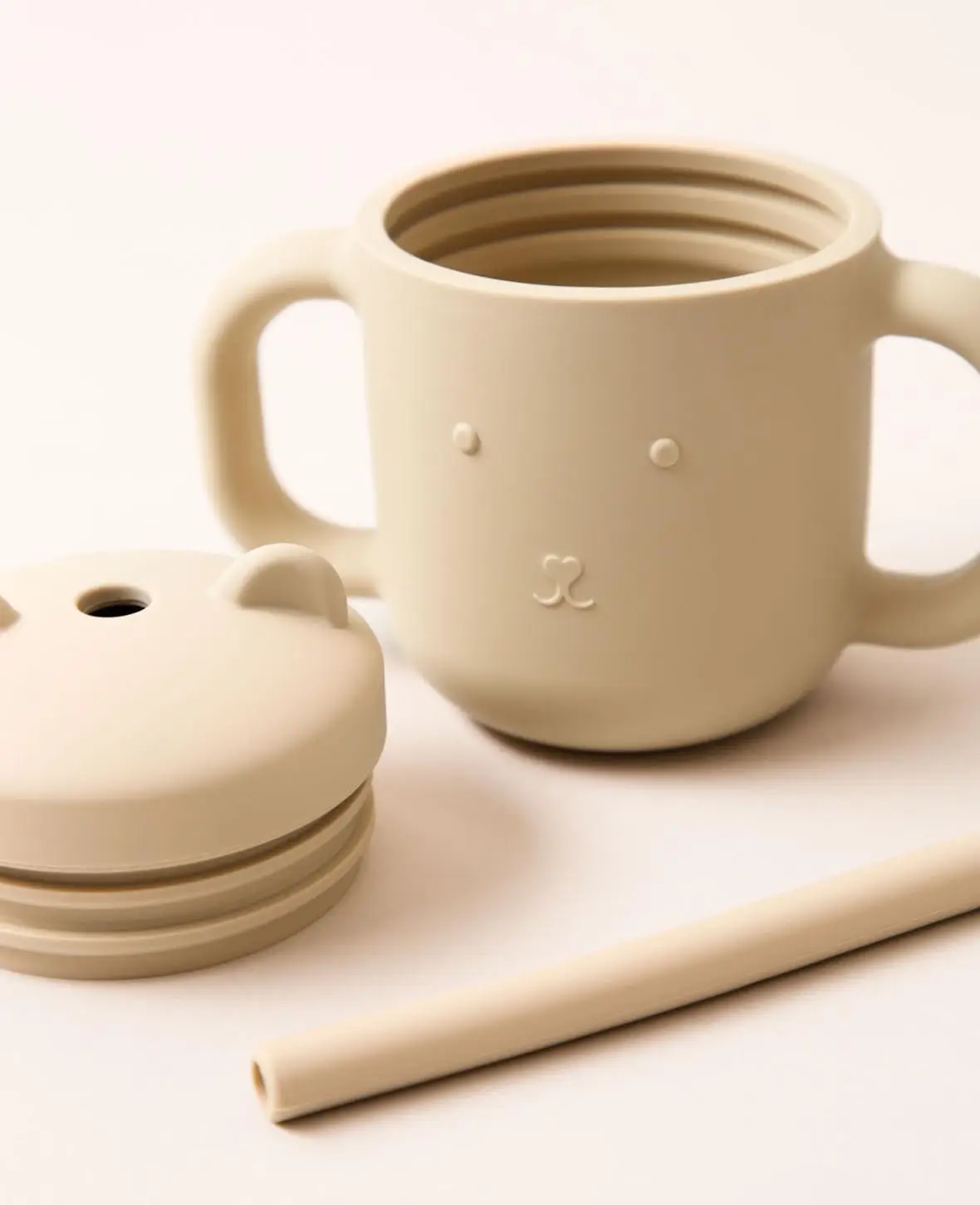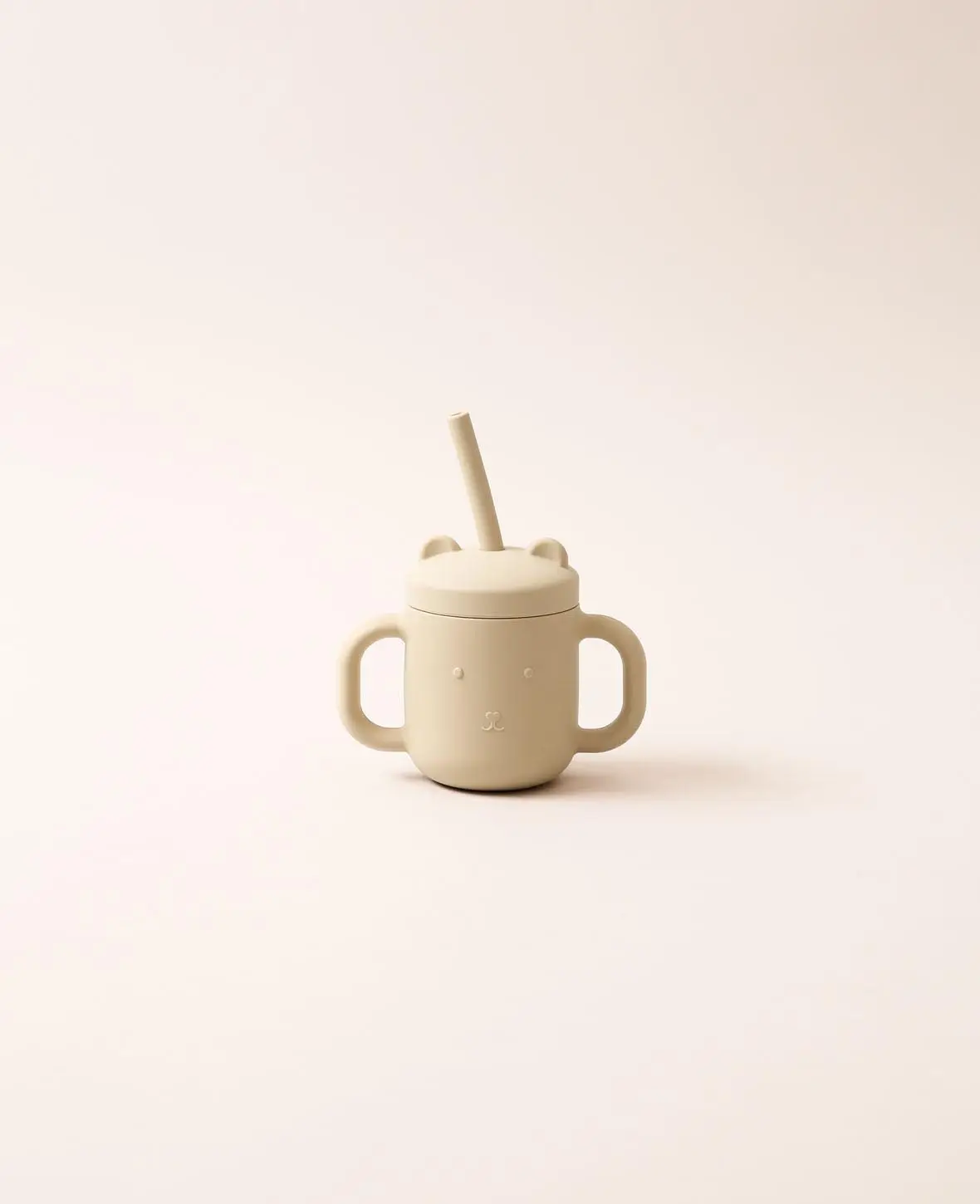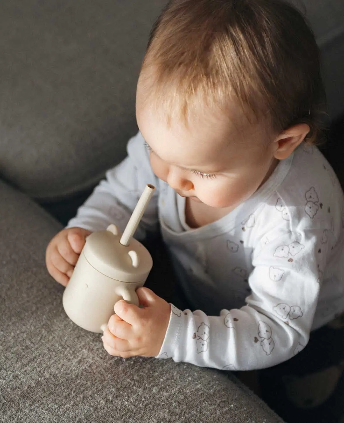 Gobelet pour enfants avec poignées et paille, en silicone beige, 160 ml