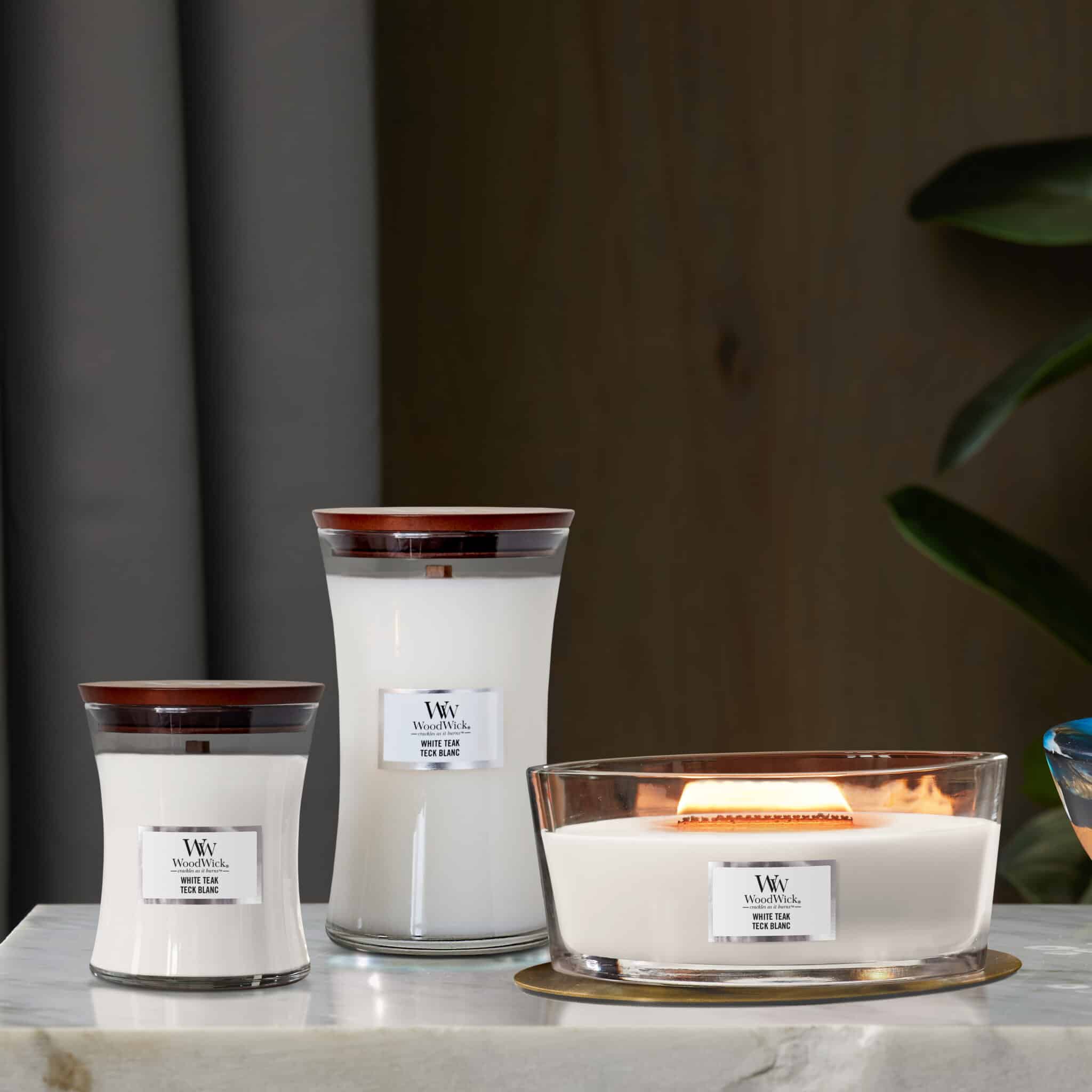 Les bougies spéciales en forme de sablier remplissent ta maison de crépitements apaisants et de parfums accueillants de WoodWick. Les bougies se distinguent par un design propre et moderne et une forme élégante. Disponible en Mini & Large Jar et Ellipse.