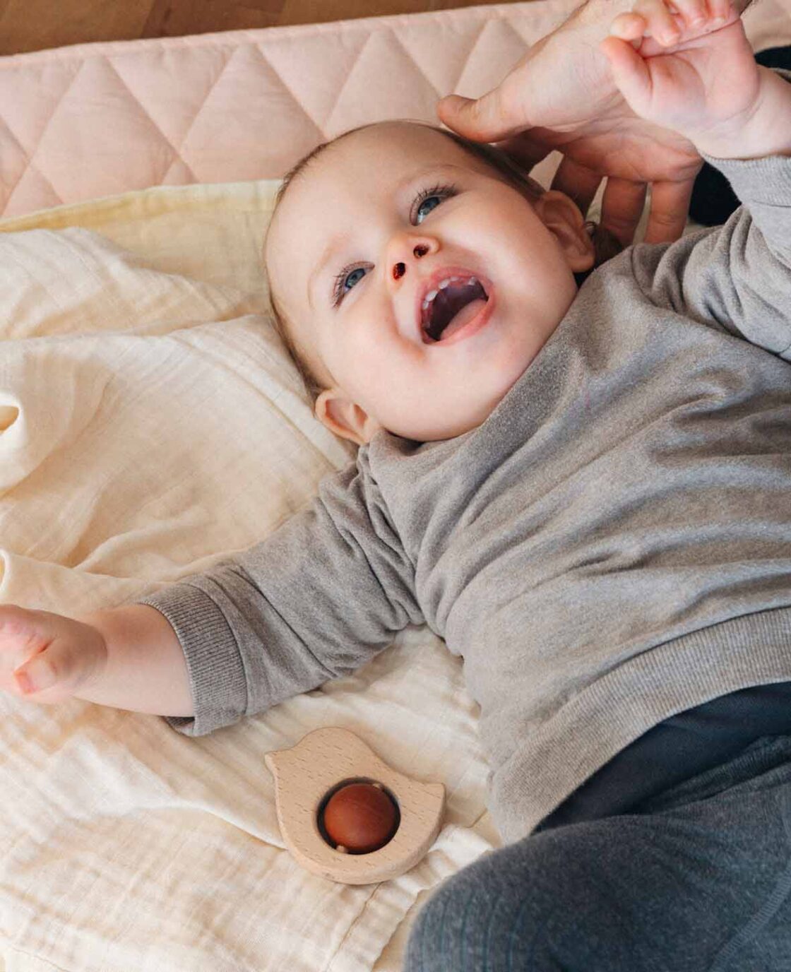 - Jouet de dentition en bois de hêtre et silicone