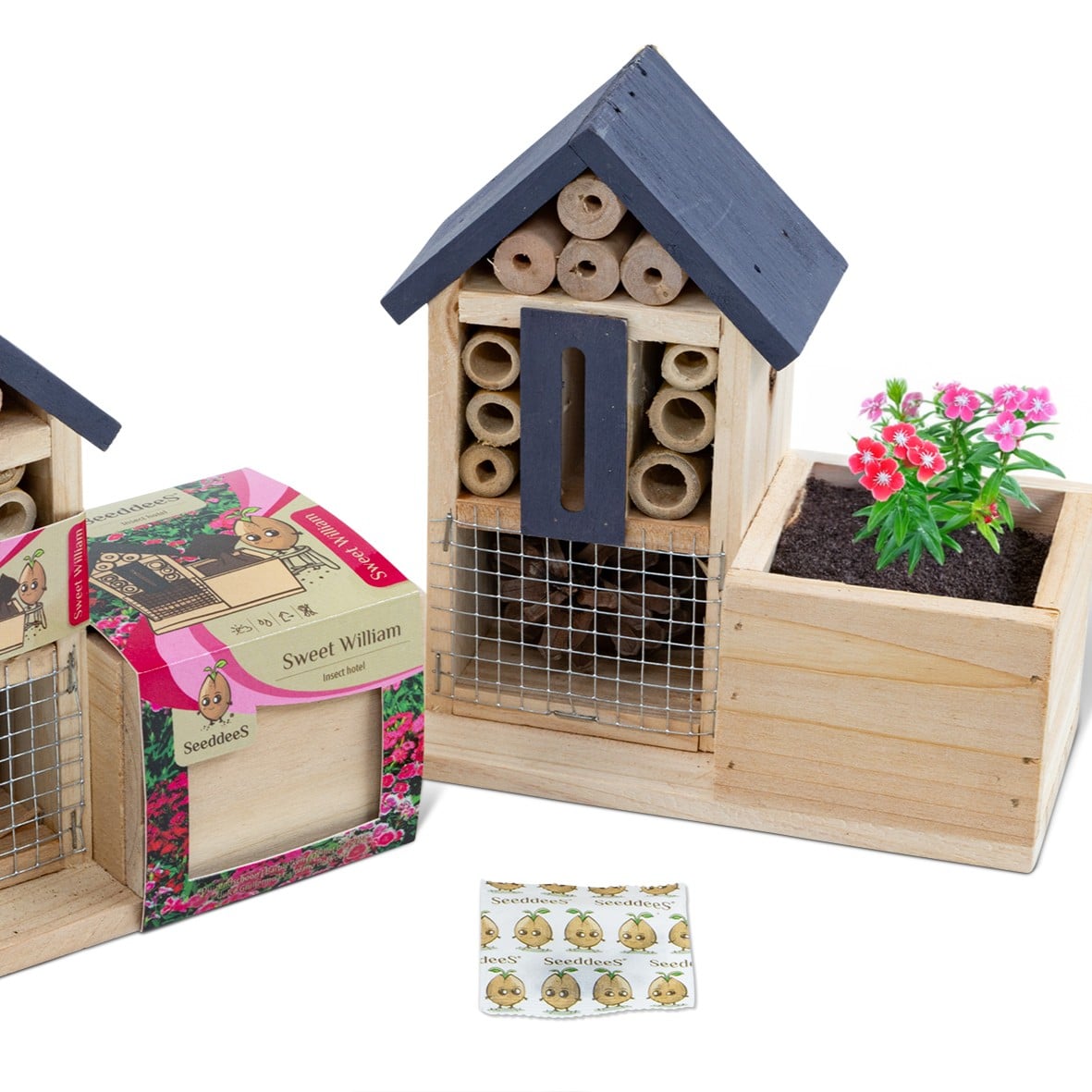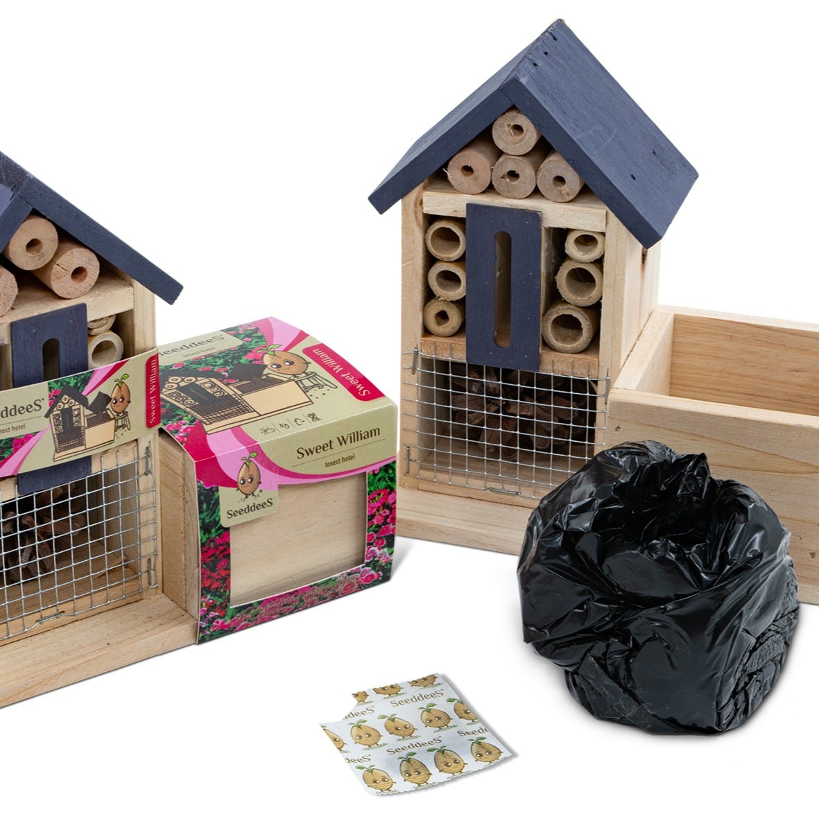 CONTIENT : Hôtel pour insectes avec terreau et graines d'œillets d'Inde.