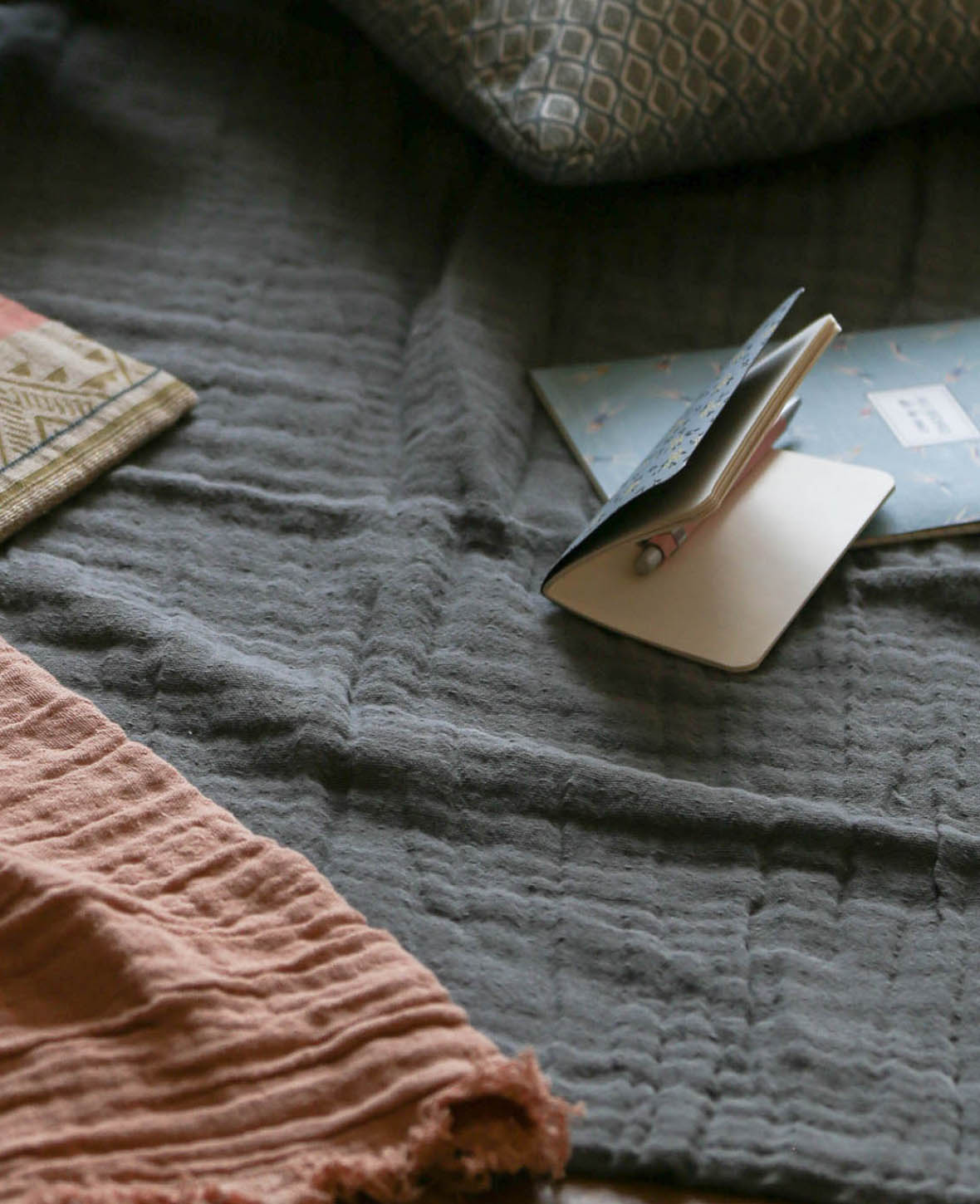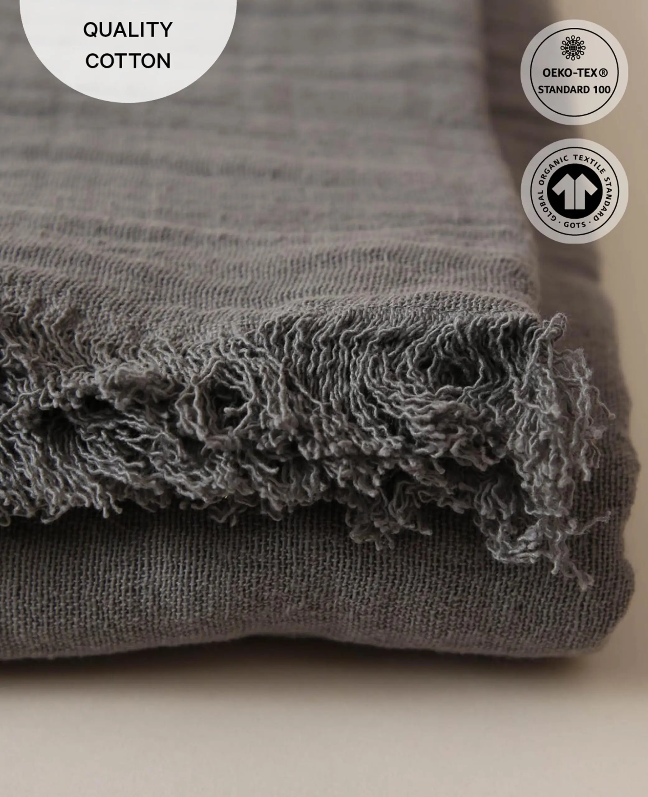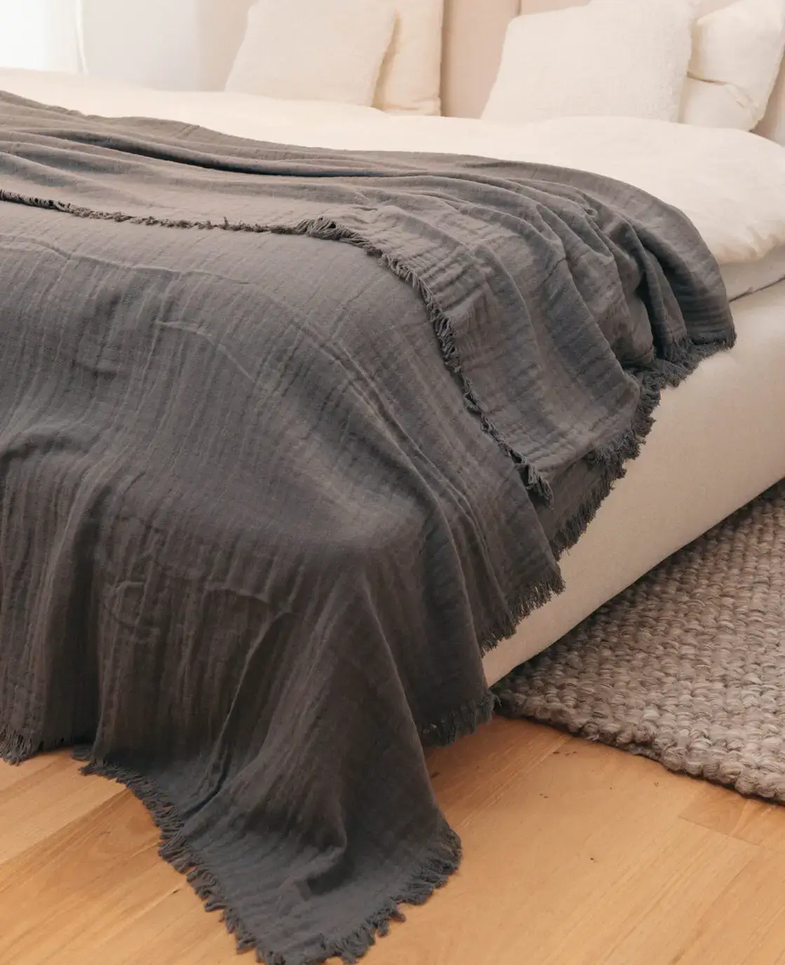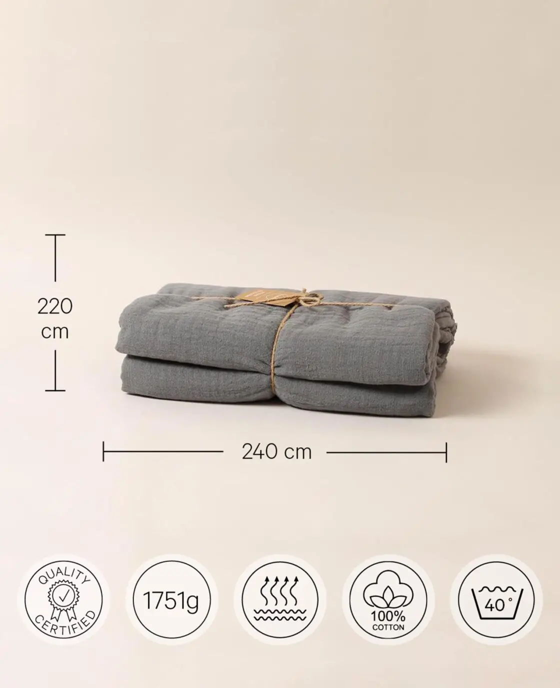 Couvre-lit en mousseline de coton bio gris foncé, 220 x 240 cm