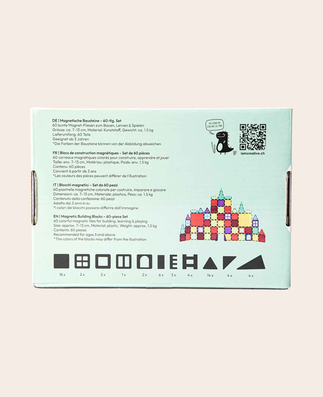 Commande ces briques magnétiques en set de 60 pièces et stimule la motricité ainsi que la créativité de tes enfants. Les tuiles magnétiques colorées garantissent un facteur de plaisir élevé en créant des châteaux, des maisons ou des personnages. De plus, ce jouet est une idée de cadeau idéale pour les anniversaires, Noël ou Pâques.
