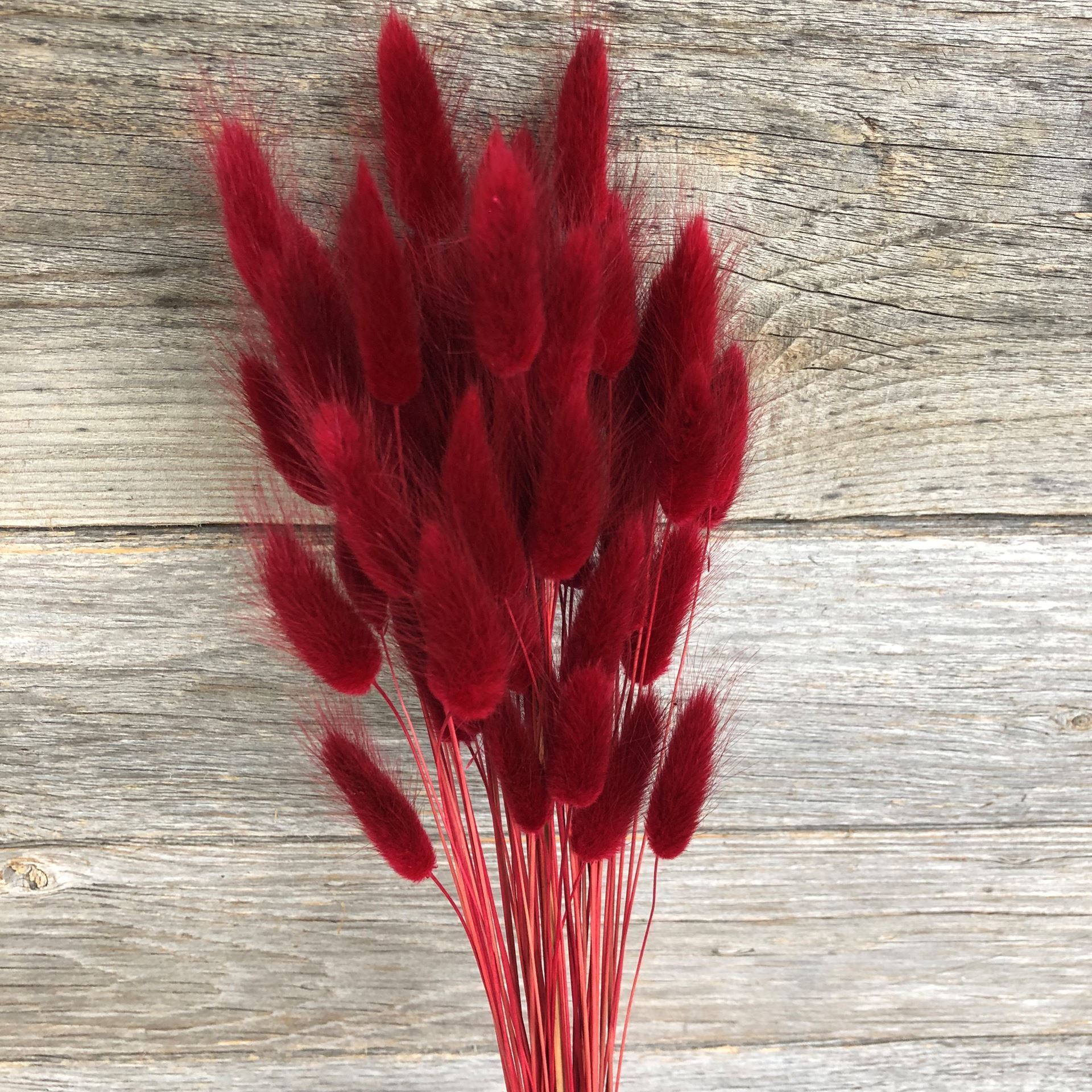 Fleurs séchées - la nouvelle tendance en matière d'intérieur ; Lagurus fleurs séchées pattes de velours bordeaux / botte Ø env.10cm, L env.50 cm / env. 30g. Idéal aussi pour combiner avec d'autres fleurs séchées de notre gamme.