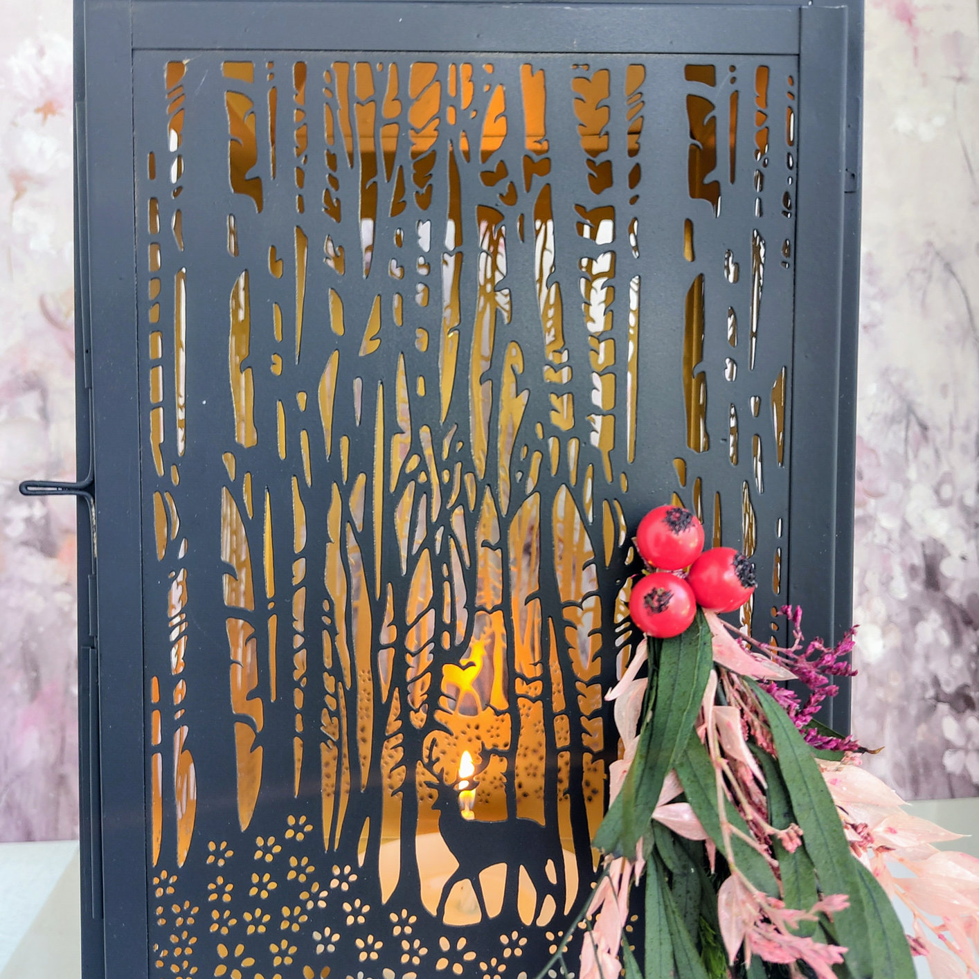 Jolie lanterne en métal, place une bougie à l'intérieur pour donner vie au beau paysage illuminé.