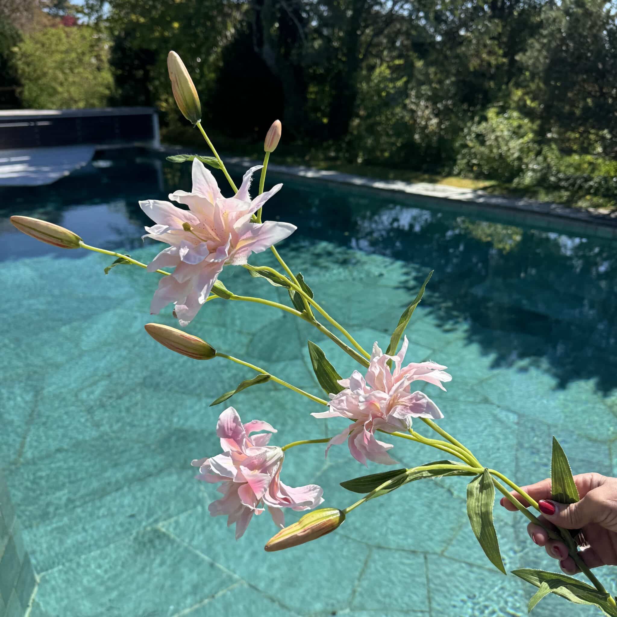 Élégant lys artificiel d'un rose délicat - à s'y méprendre et facile à entretenir. Parfait pour des décorations élégantes à l'intérieur et à l'extérieur.