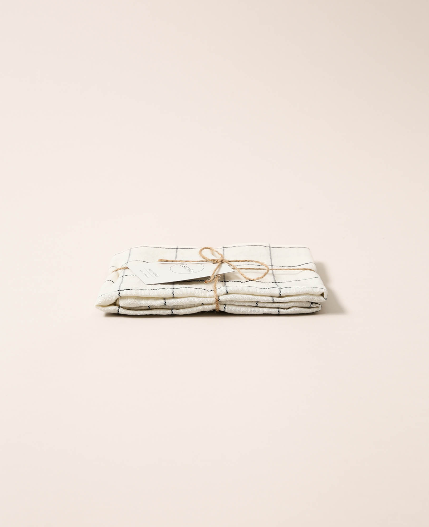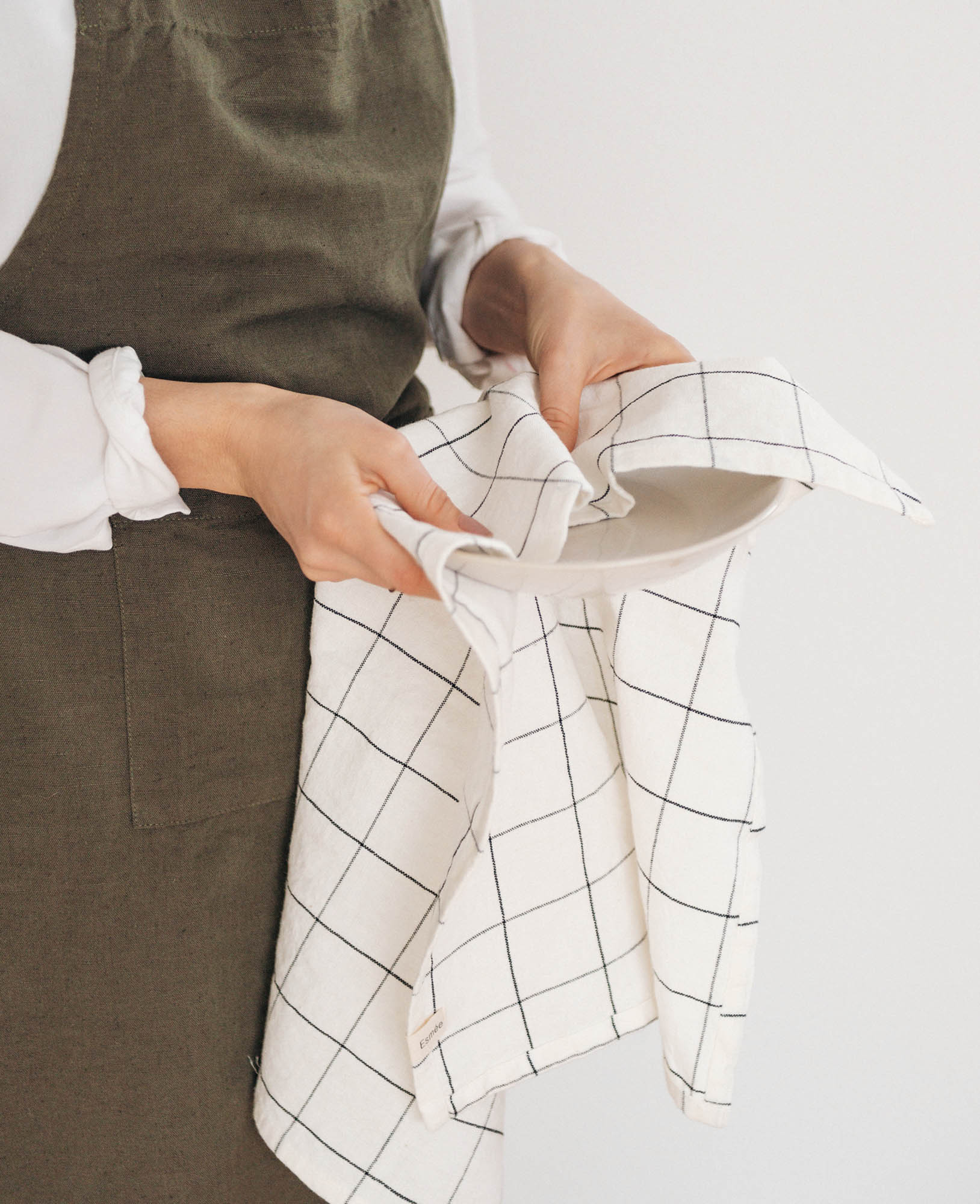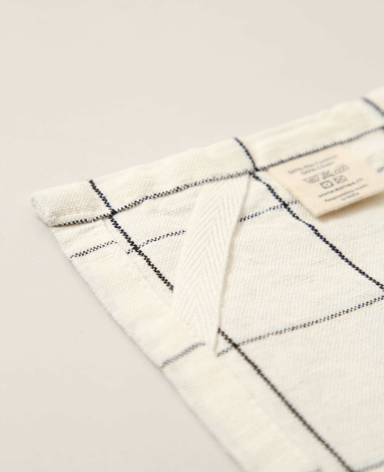 Linge de cuisine / torchon "Milou" en mélange coton-lin blanc à carreaux