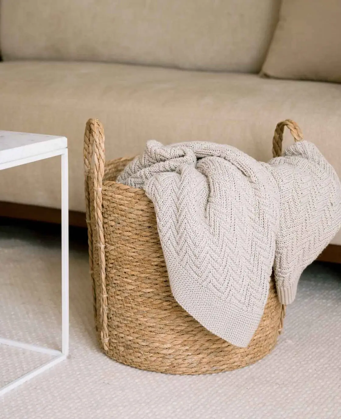 - Panier de rangement fabriqué en fibres naturelles durables avec des poignées pratiques et stables