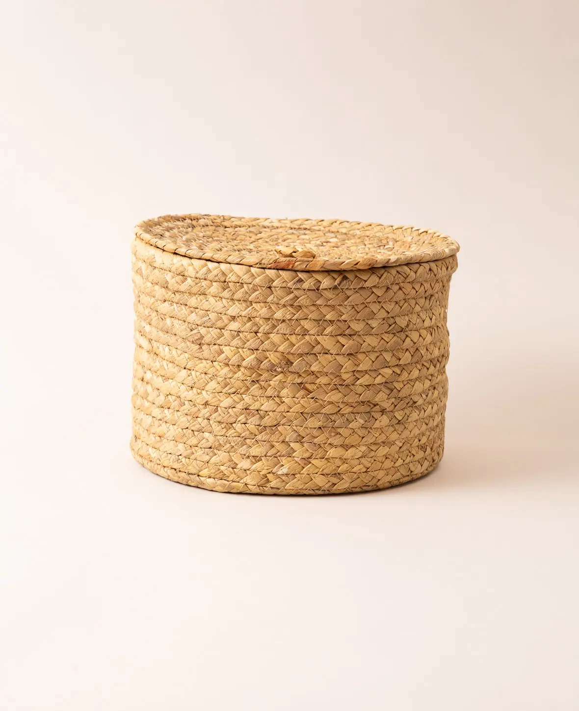 Notre panier de rangement rond avec couvercle en fibres naturelles tressées allie charme naturel et fonctionnalité pratique. Disponible en trois tailles, il offre de multiples possibilités d'utilisation et permet de belles combinaisons.