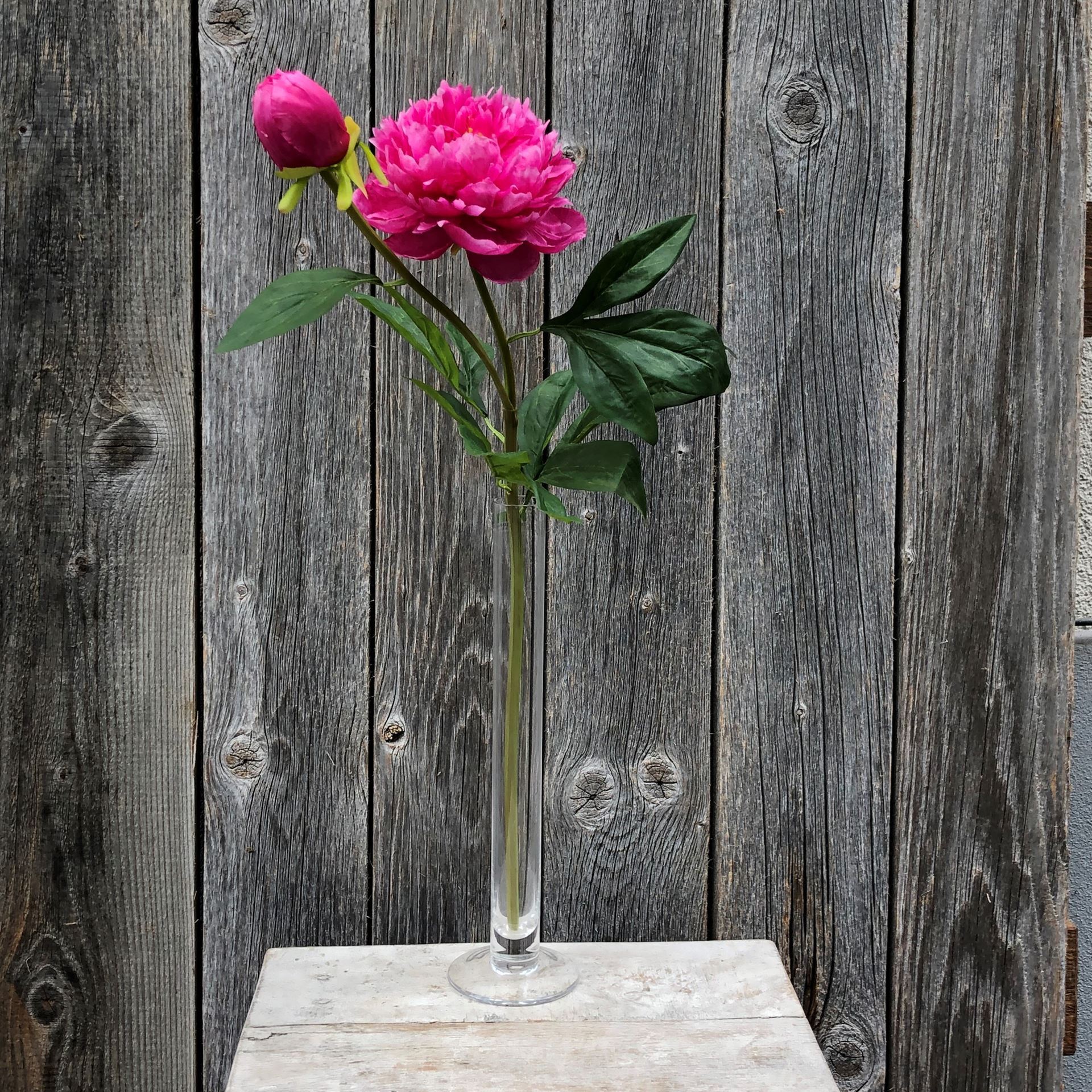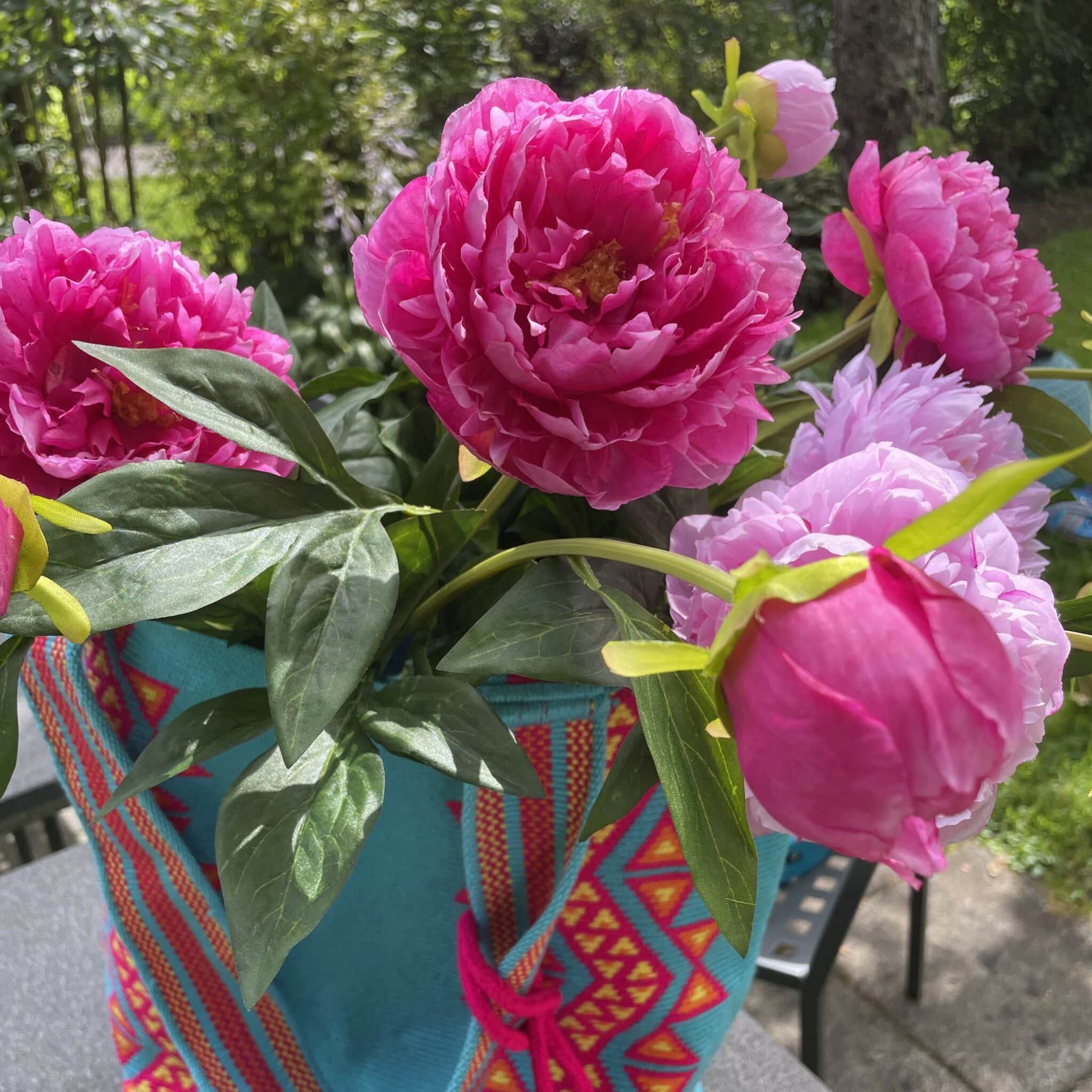 Magnifiques pivoines Paeonia avec vase ; grâce aux fibres synthétiques modernes, les fleurs artificielles se distinguent à peine des vraies.