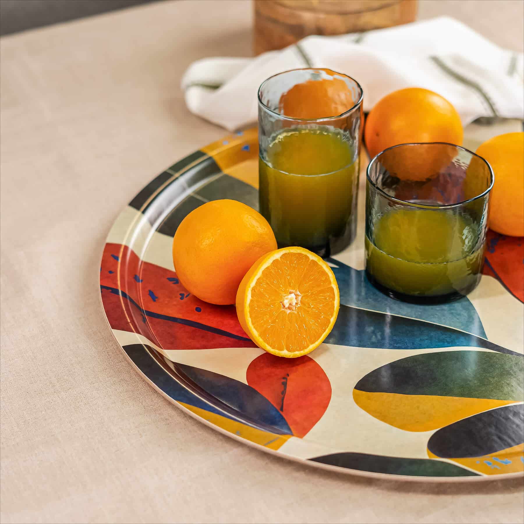 Plateau de haute qualité en bois de bouleau durable avec un design vivant en édition limitée. Conçu en Suisse, fabriqué à la main en Suède. Ø 46 cm.