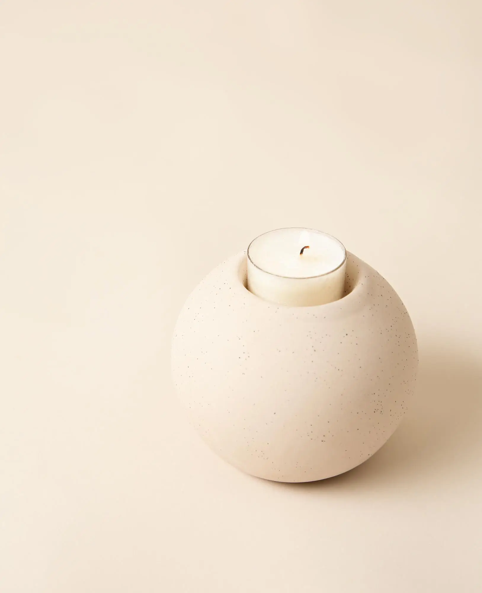 Photophore en céramique beige en forme de boule avec surface mate, H 8.50 cm