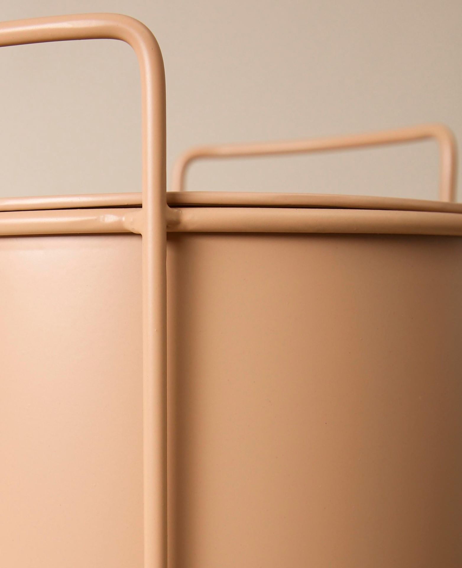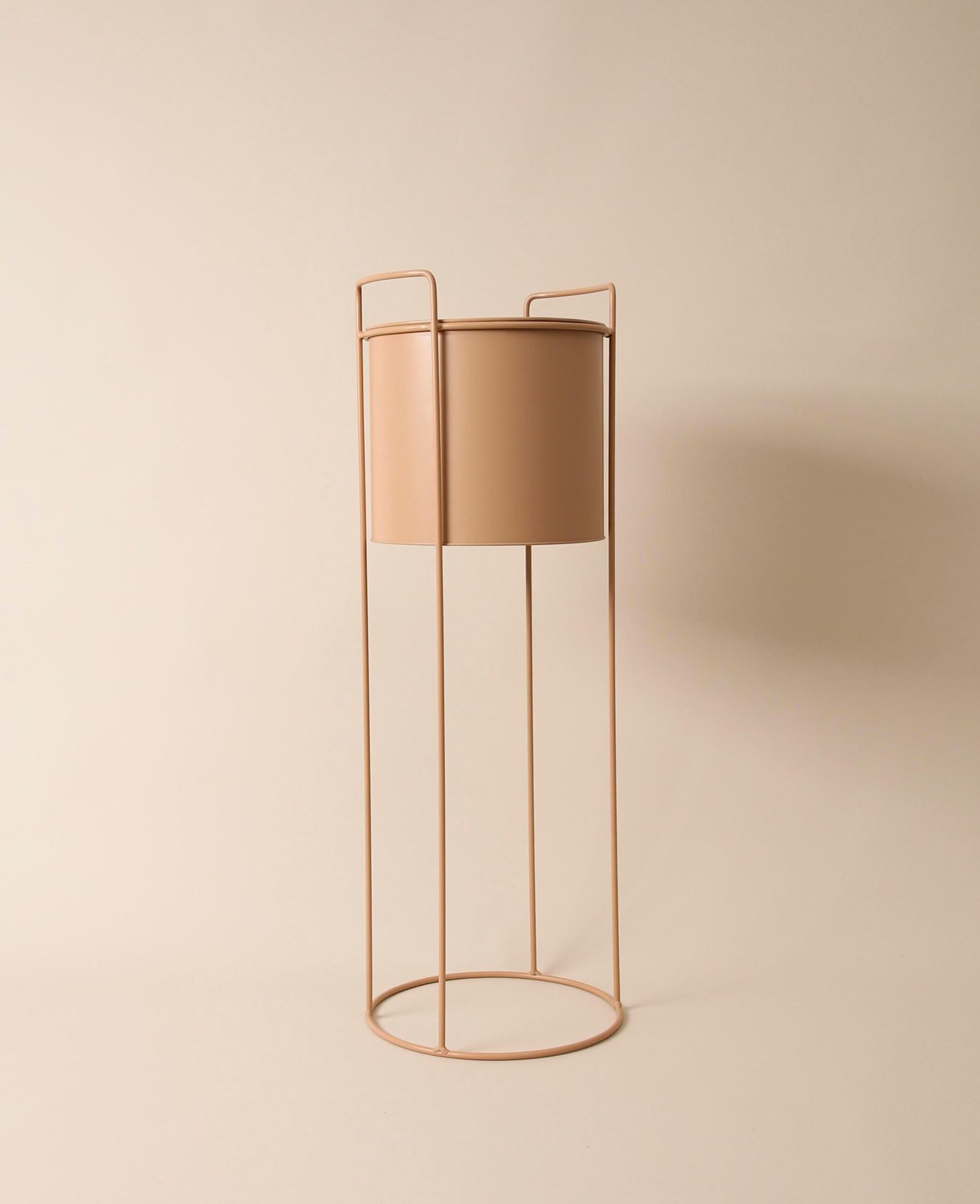 Pot de fleurs ou support pour plantes moderne en métal de couleur nude. Disponible en deux tailles pour des combinaisons particulièrement belles.