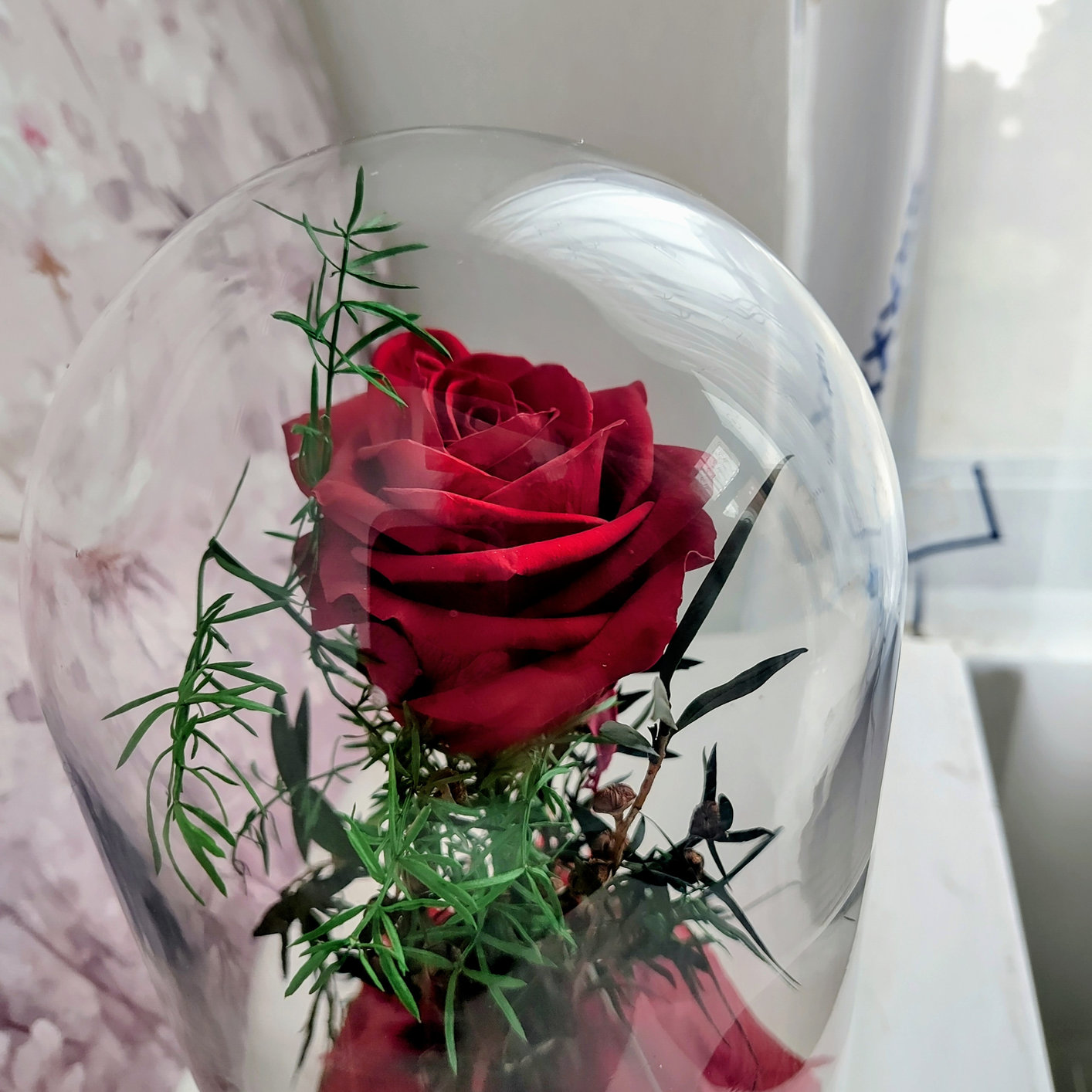 Rose rouge dans une cloche de verre