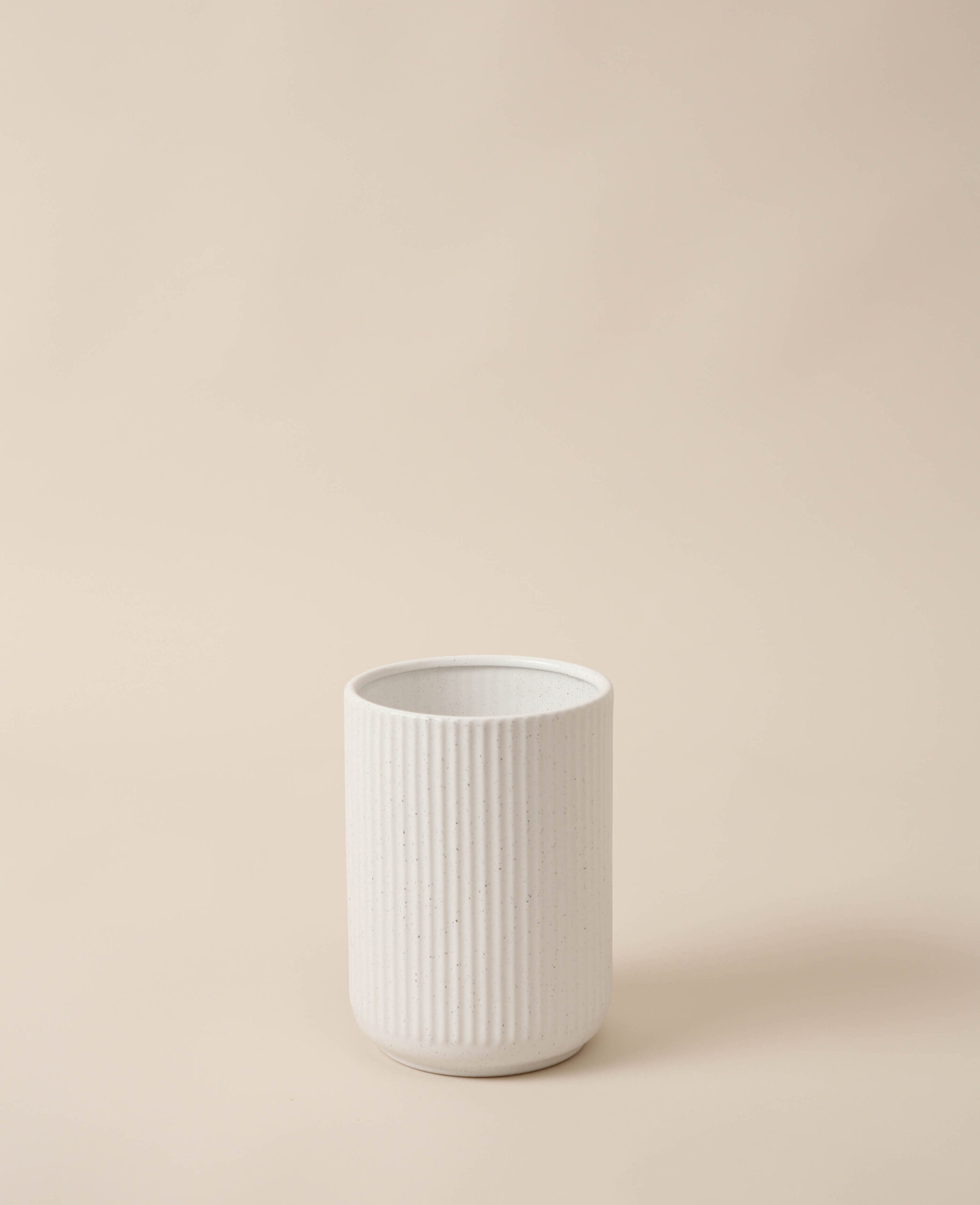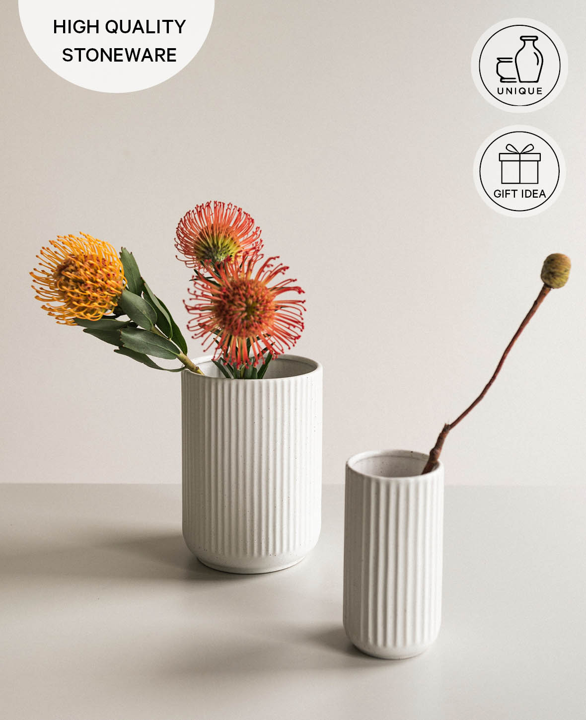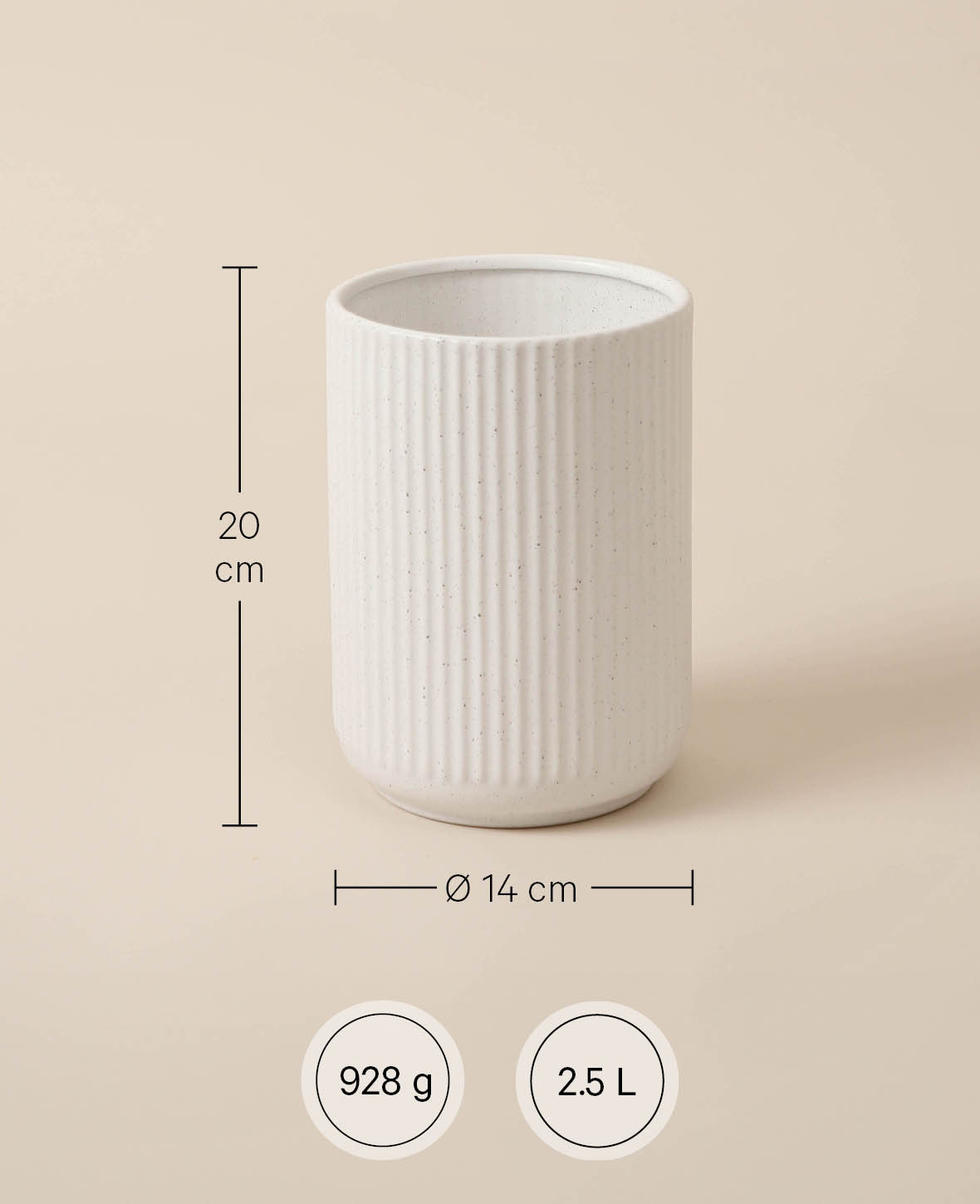 Vase en céramique de style scandi avec des rainures et un motif de cuisson fin, 14 x 20 cm