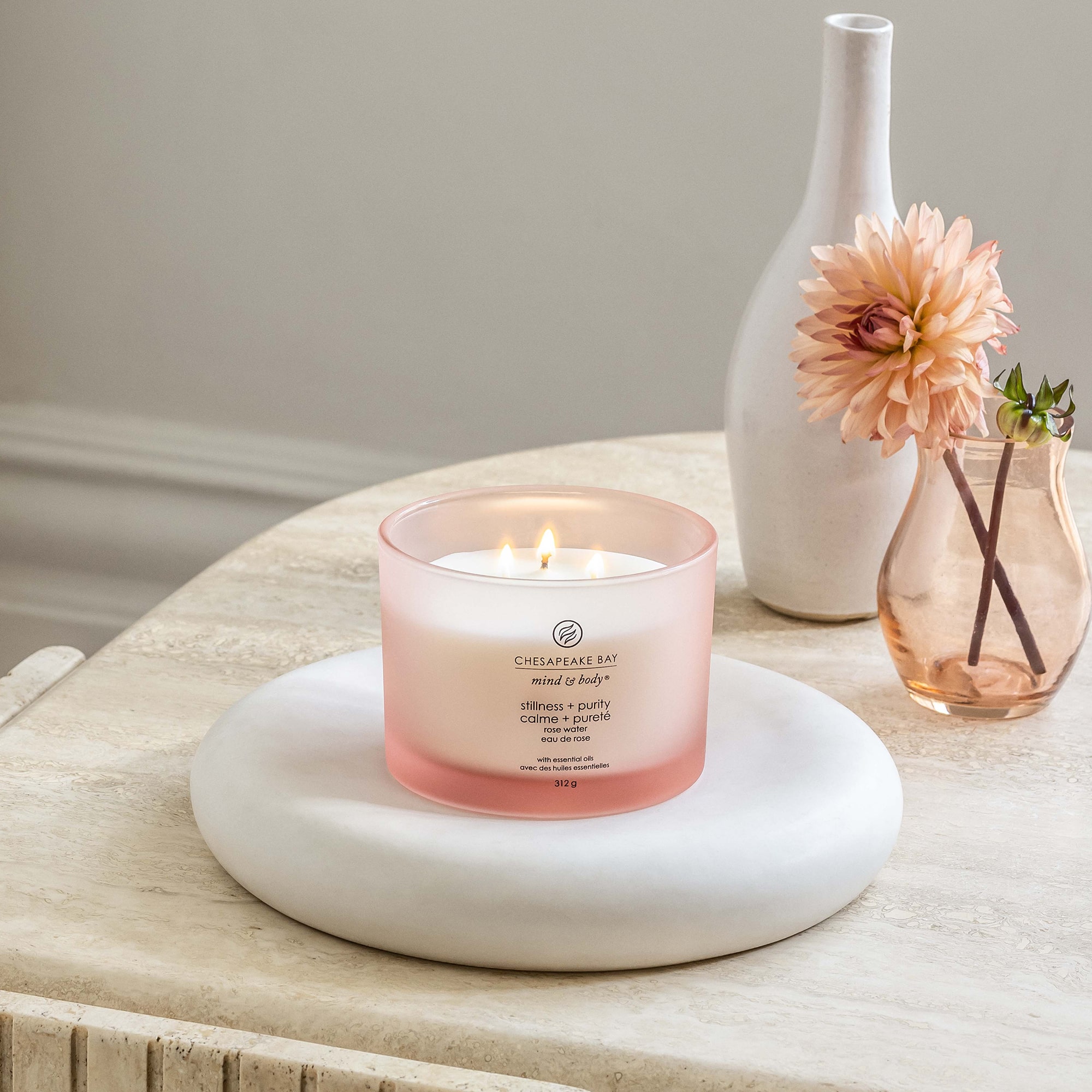 Un bouquet fleuri de roses, de pivoines fraîches et de douces notes de muguet repose sur une base de feuille de clou de girofle, de bois d'aigle résineux et de senteurs d'ambre doré pour un arôme pur et délicat. Huiles essentielles : feuille de clou de girofle, camomille, orange, lavande, eucalyptus