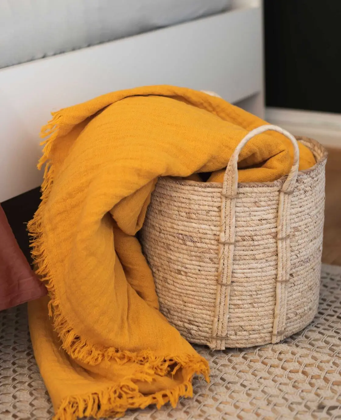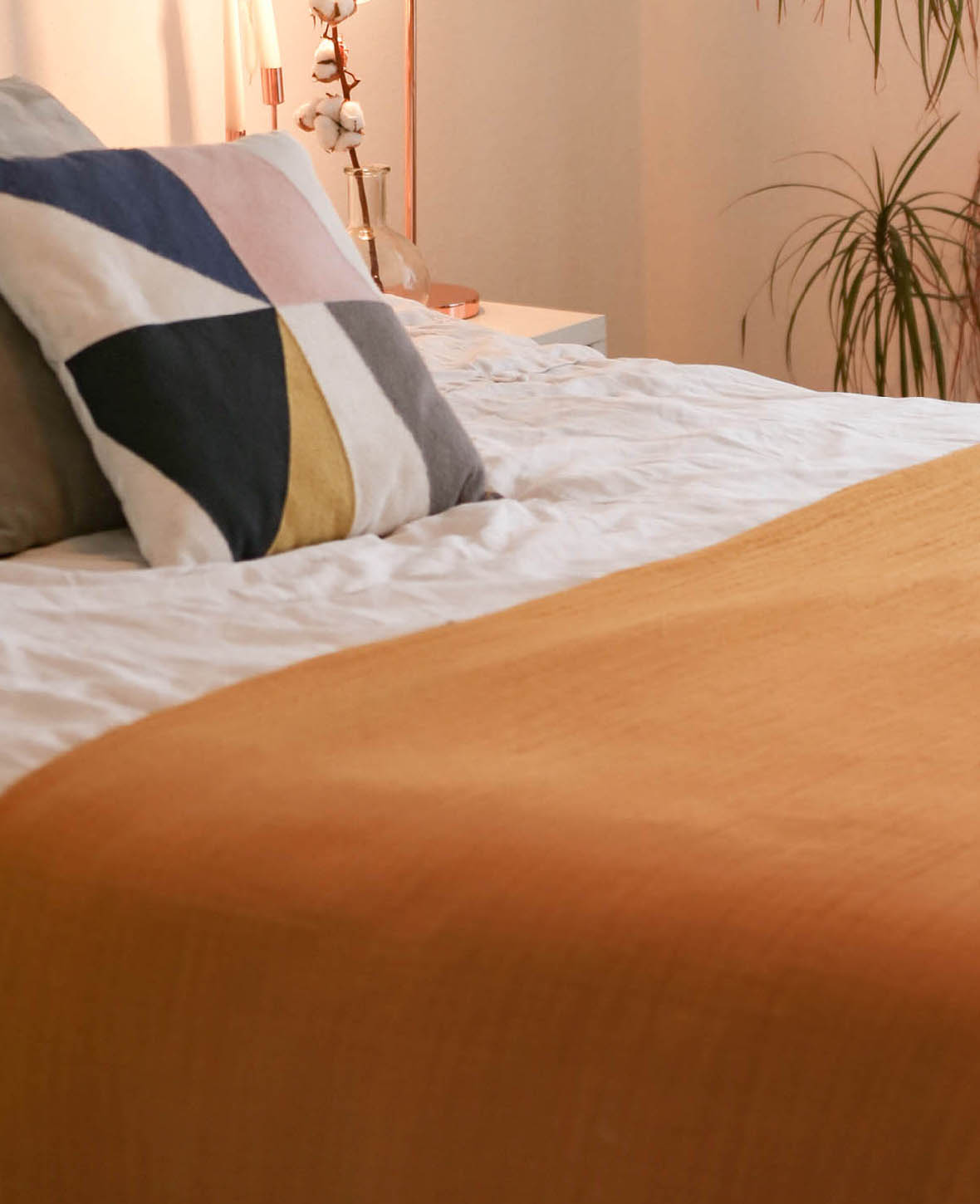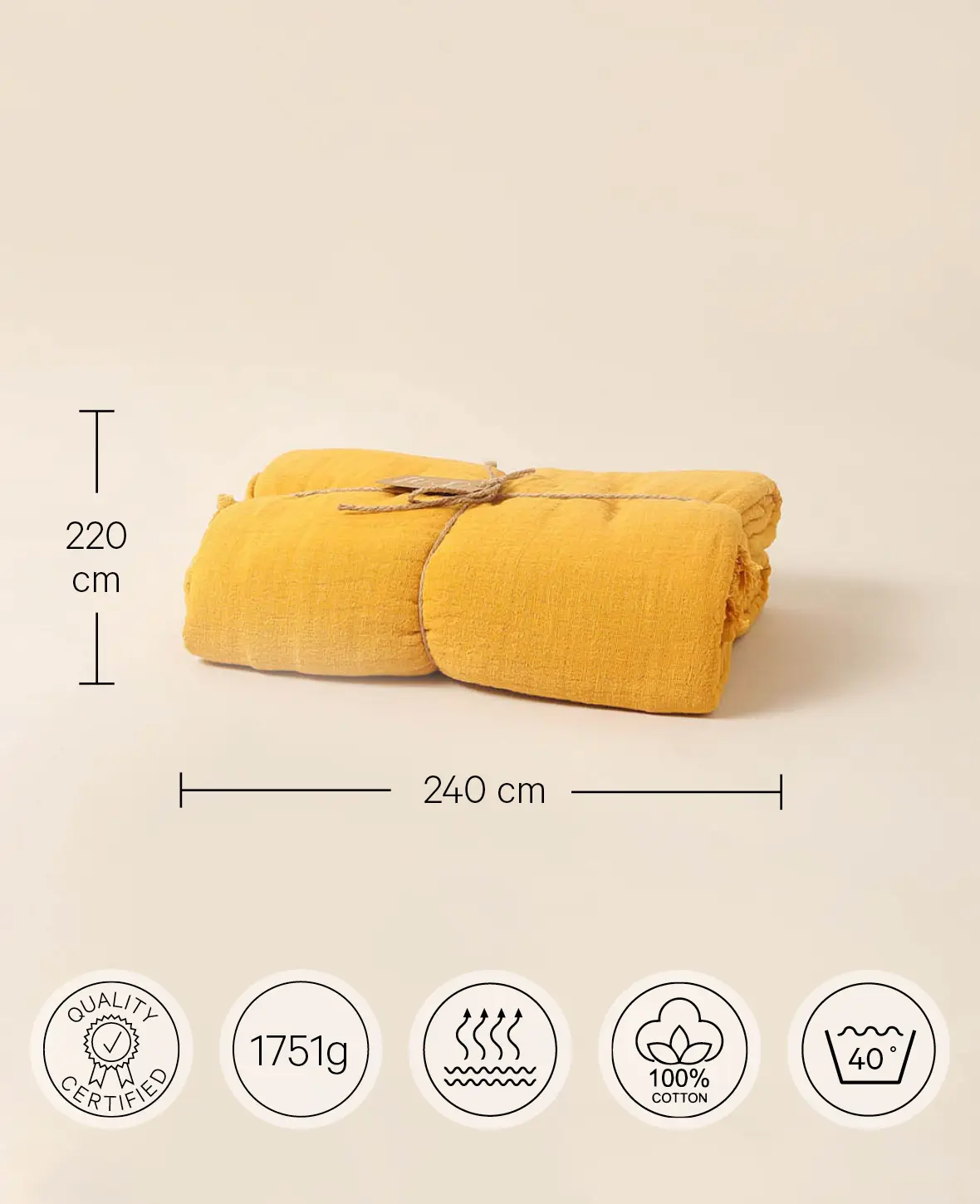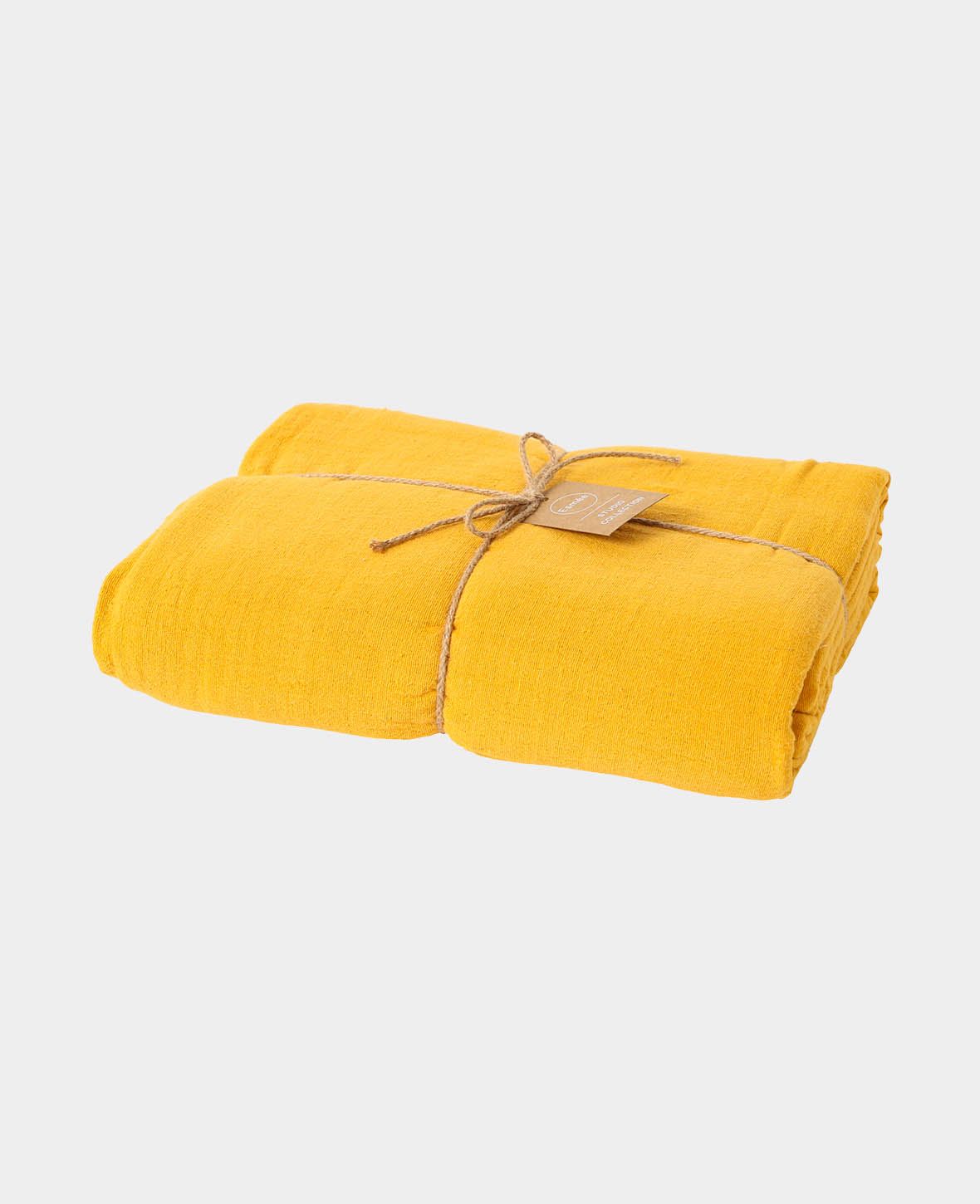 Couvre-lit en mousseline de coton bio jaune moutarde, 220 x 240 cm