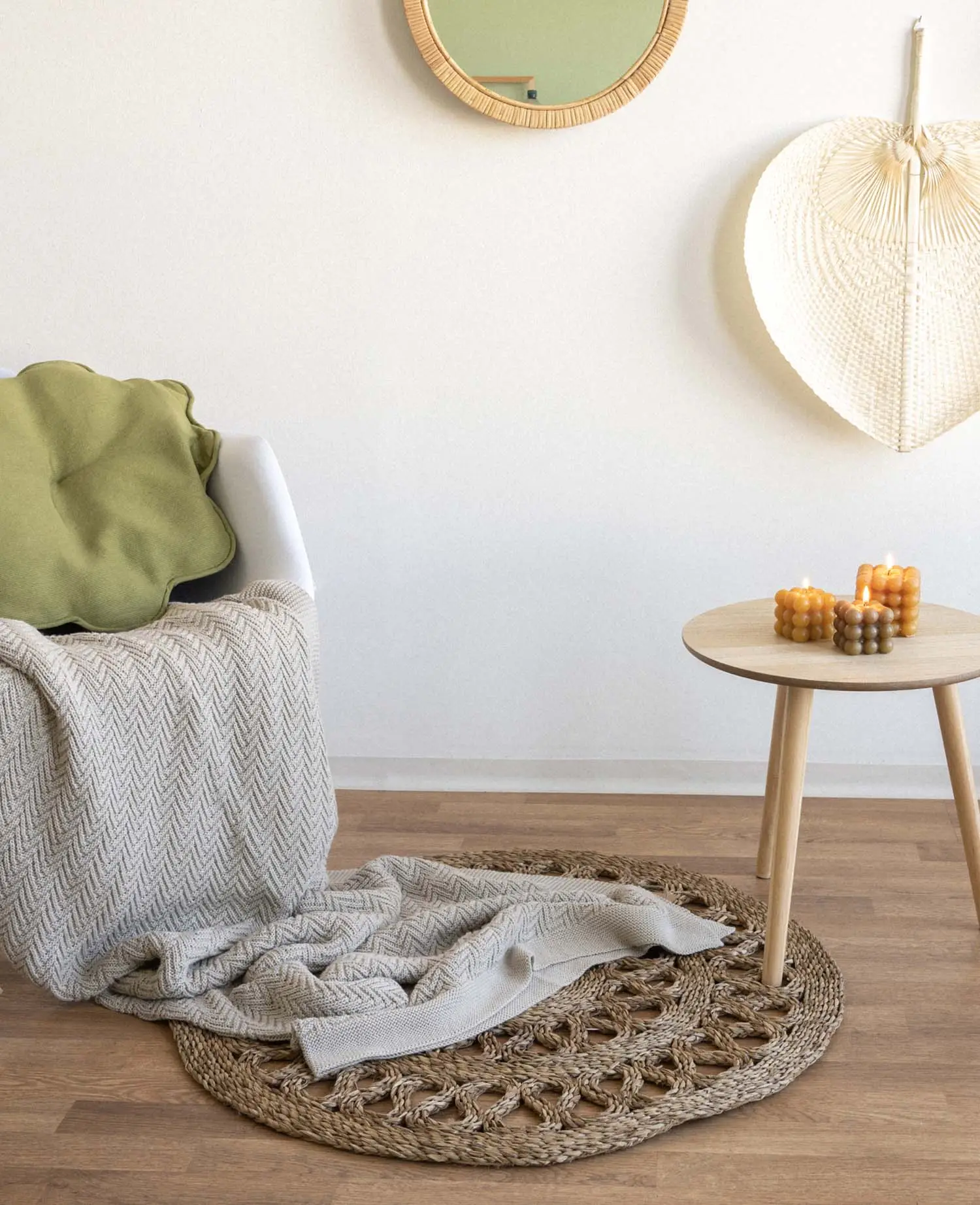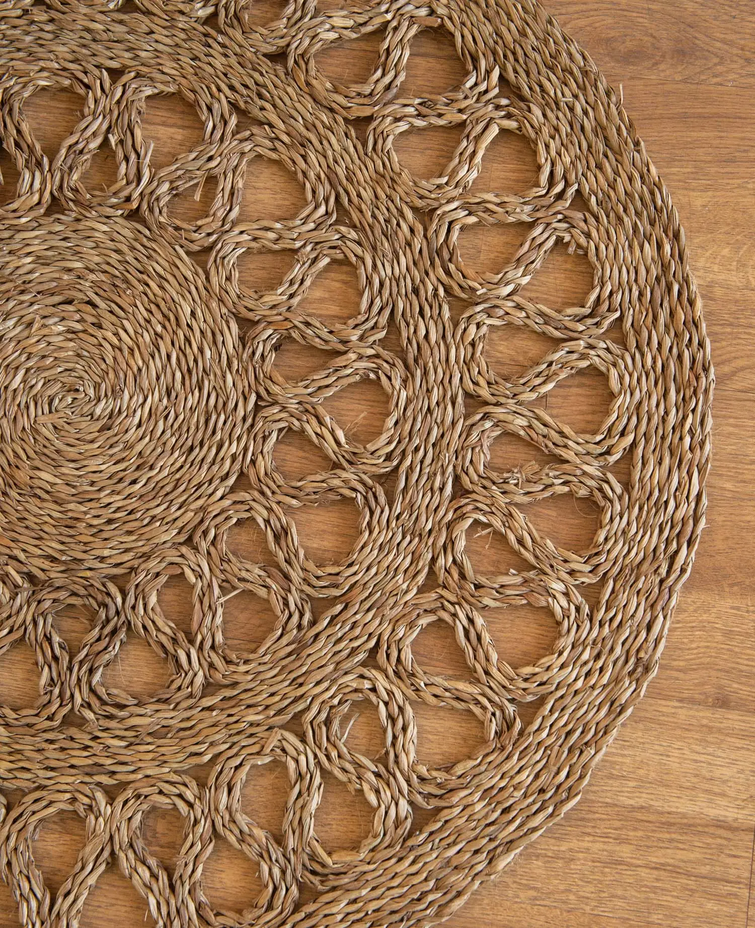 - Tapis rond en roseau naturel