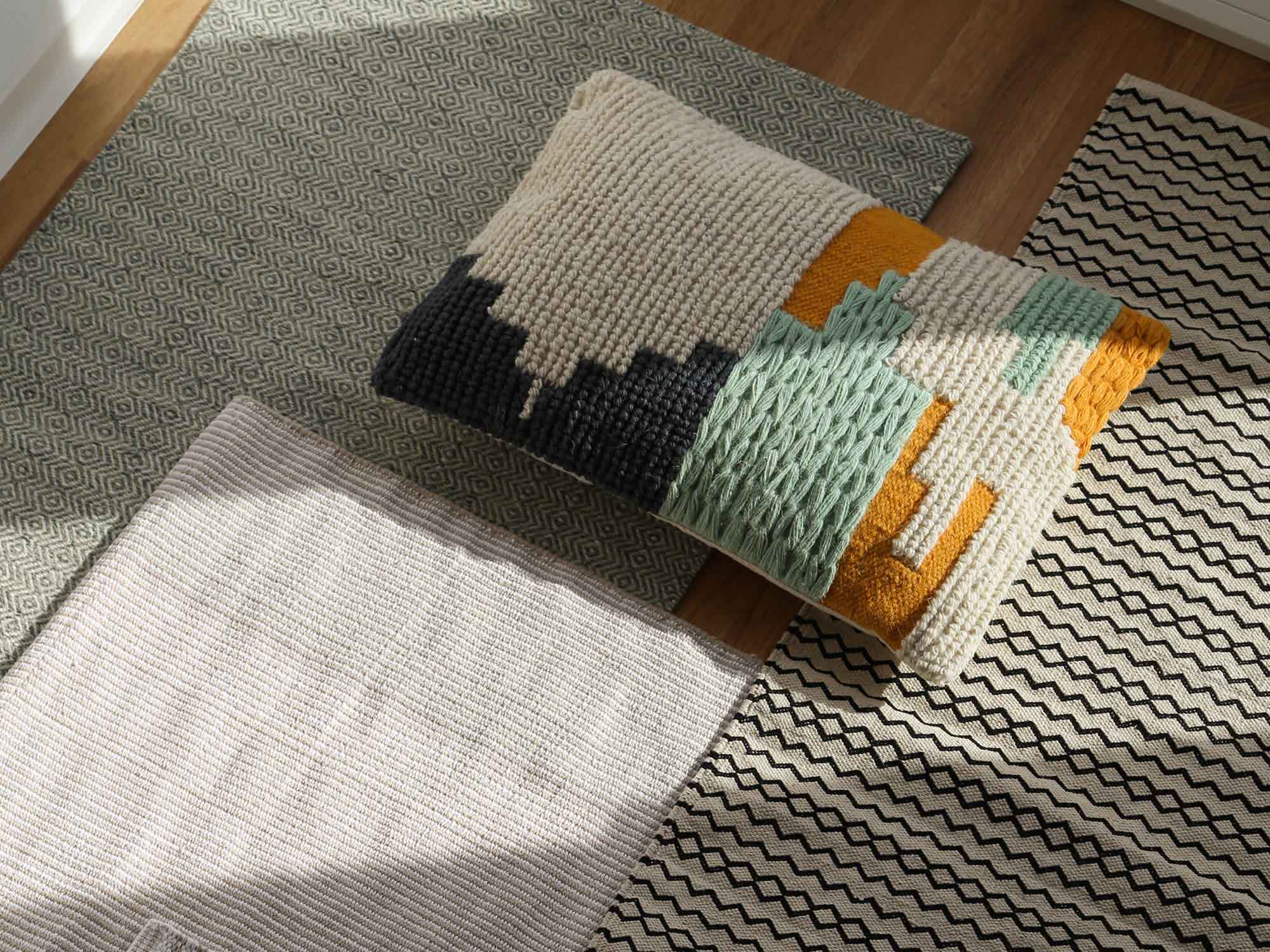 - Tapis en laine avec des motifs tissés ethniques de couleur sauge et crème