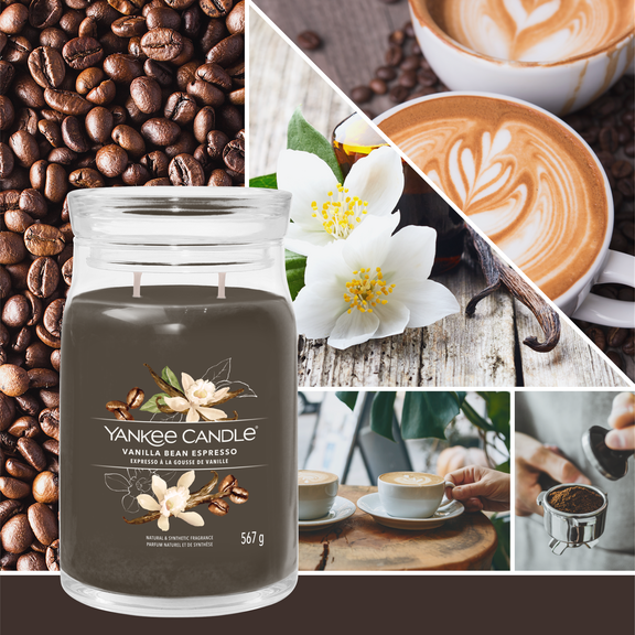 Un mélange riche et crémeux de l'odeur des grains d'espresso fraîchement moulus et de la vanille sucrée.