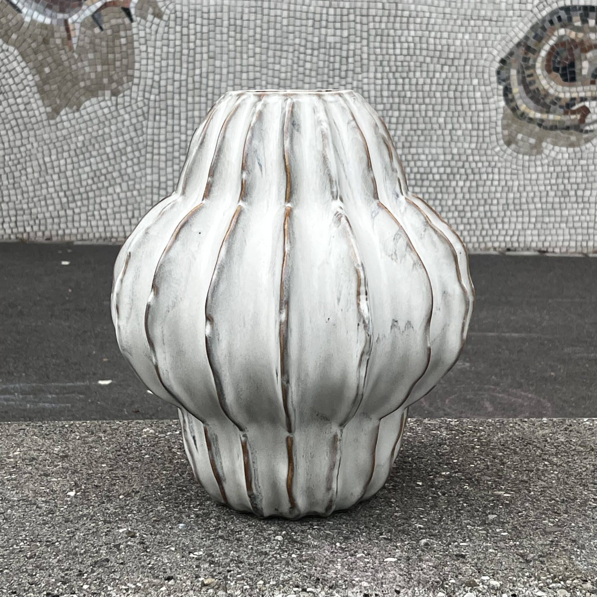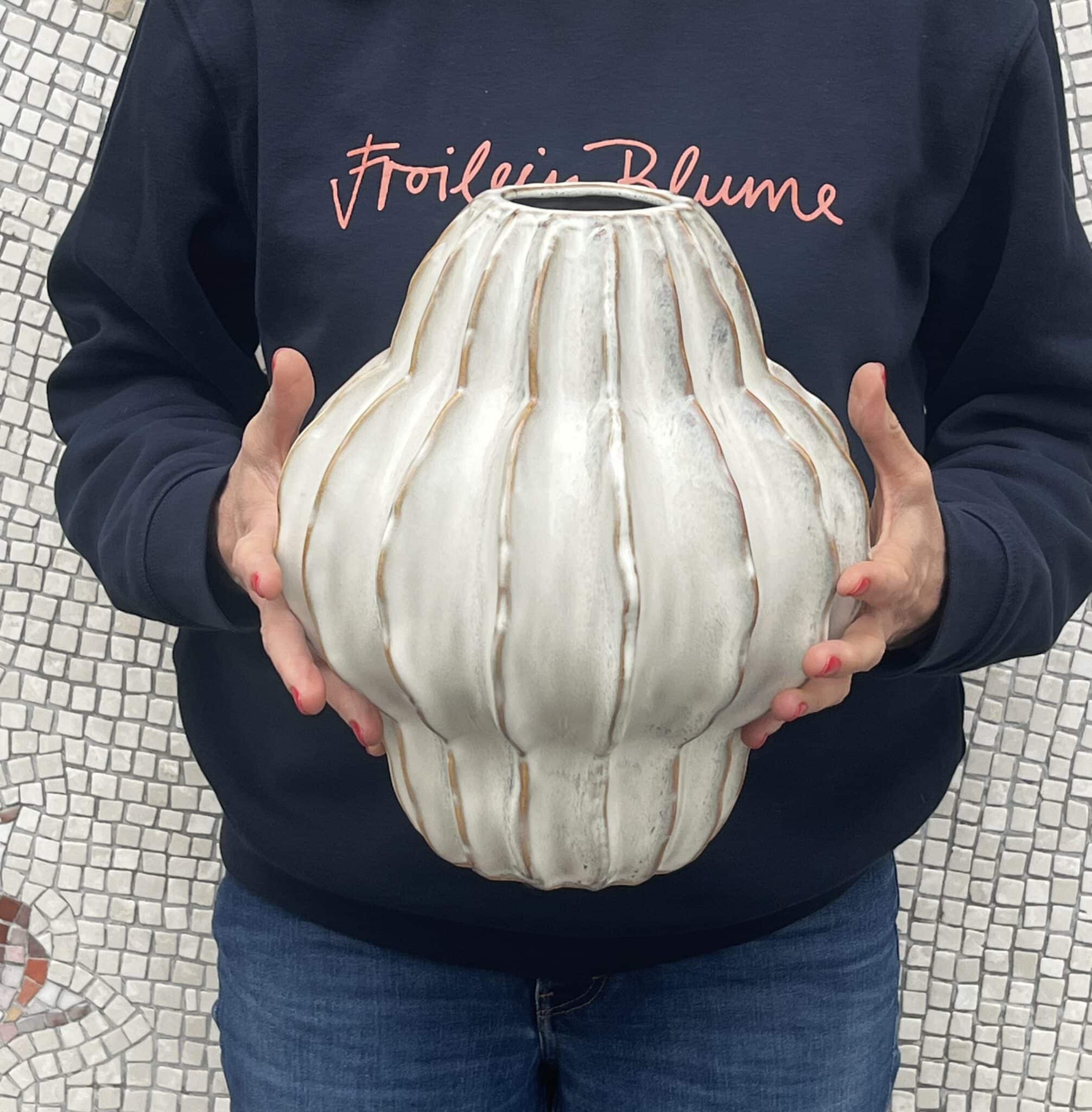 Le vase "Lindenhof" se distingue par sa forme extraordinaire et son caractère sculptural. Avec ses lignes douces et sa finition blanc antique mate, il attire tous les regards, qu'il soit utilisé seul ou arrangé avec des fleurs.