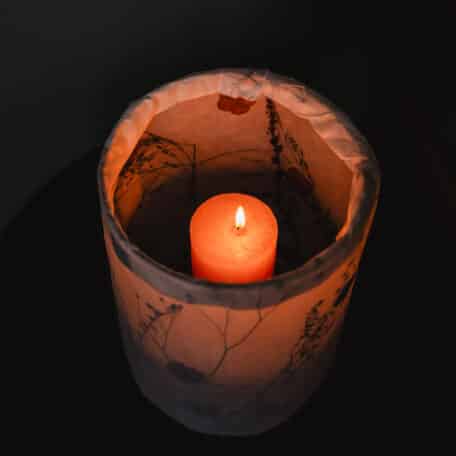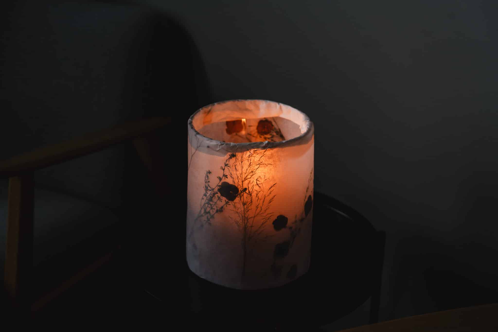 Maintenant, tu peux placer la bougie au centre et l'allumer. Cela donne une ambiance merveilleuse et enchante même la plus sombre des soirées d'automne.