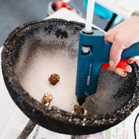 Vaporise l'intérieur et l'extérieur de l'hémisphère en polystyrène avec de la peinture noire en spray et laisse sécher.