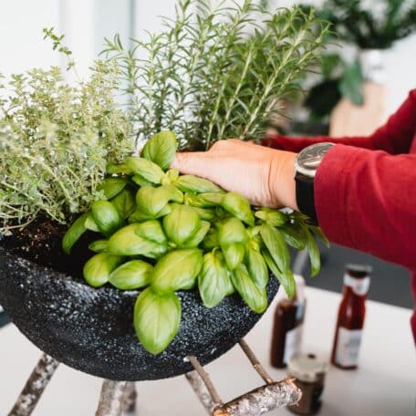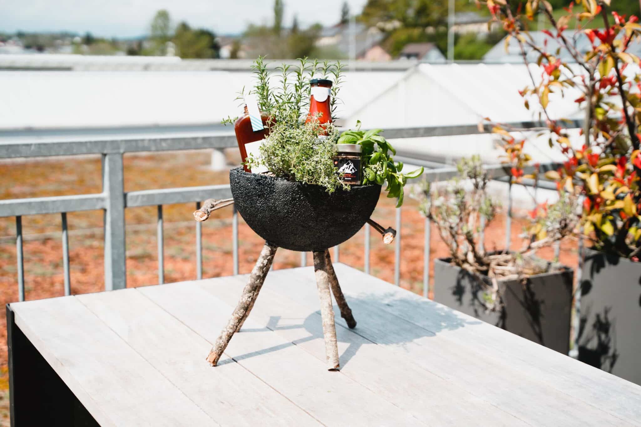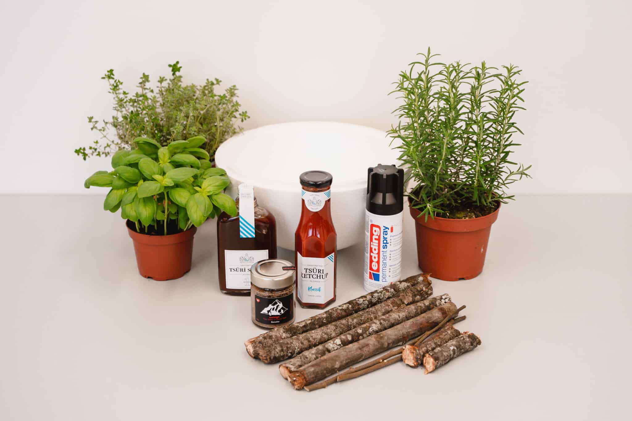 Laisse sécher le tout pendant environ 30 minutes et plante des herbes sur le plateau.
