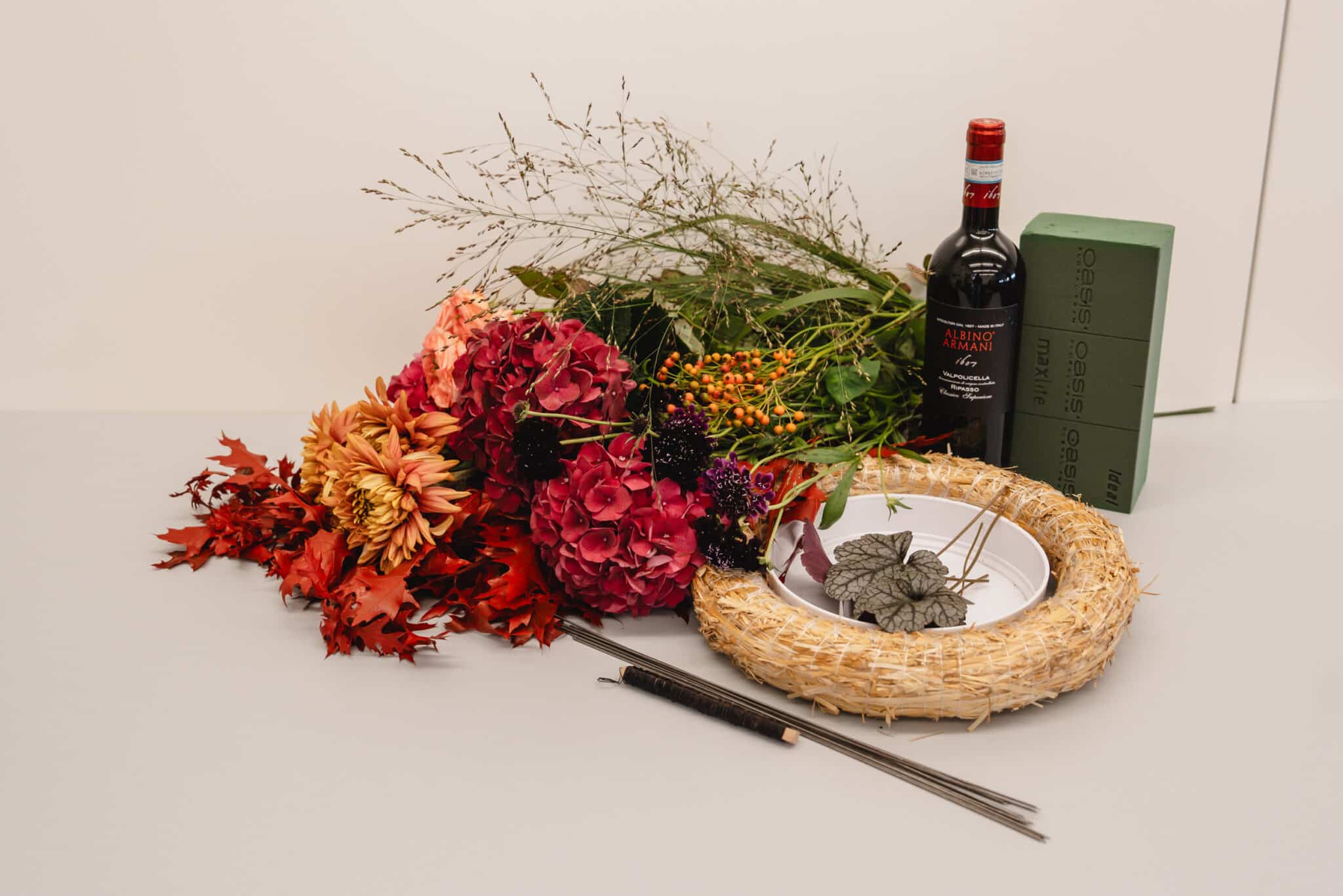N'oublie pas que la mousse à bouturer Oasis fournit de l'eau aux fleurs. C'est pourquoi il faut l'arroser régulièrement. Pour éviter les taches d'eau, place cette décoration de préférence sur un support résistant à l'eau.